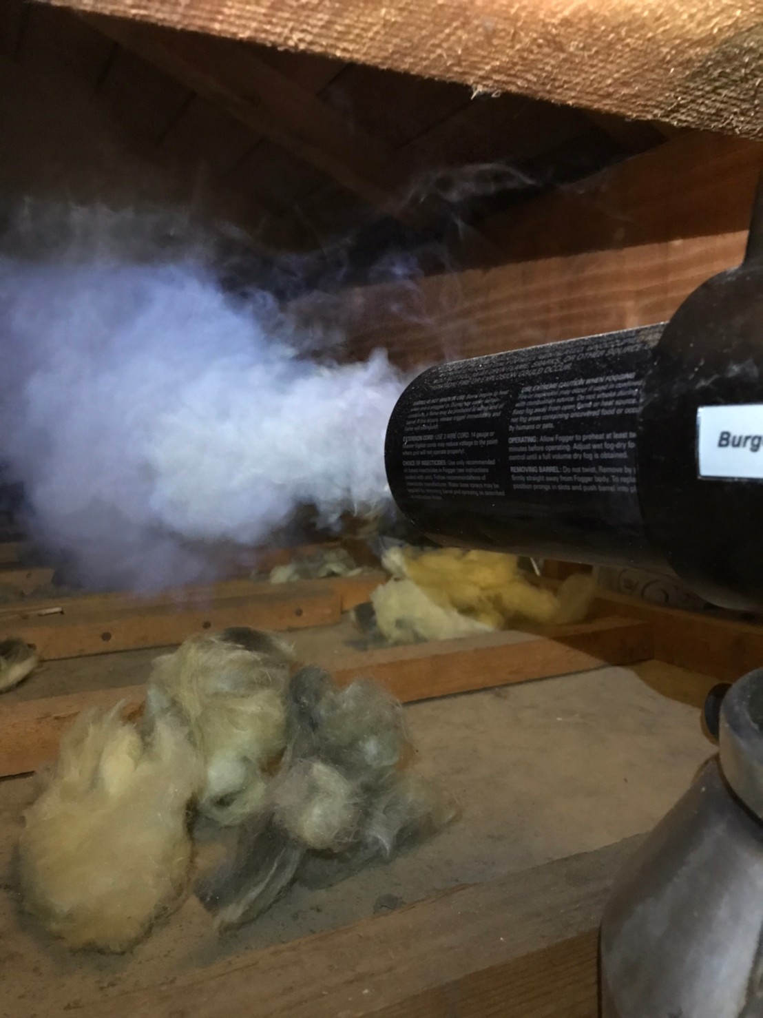 まずは、燻煙剤と呼ばれる薬剤を天井裏や床下に投入することで、アライグマを追い出していきます。