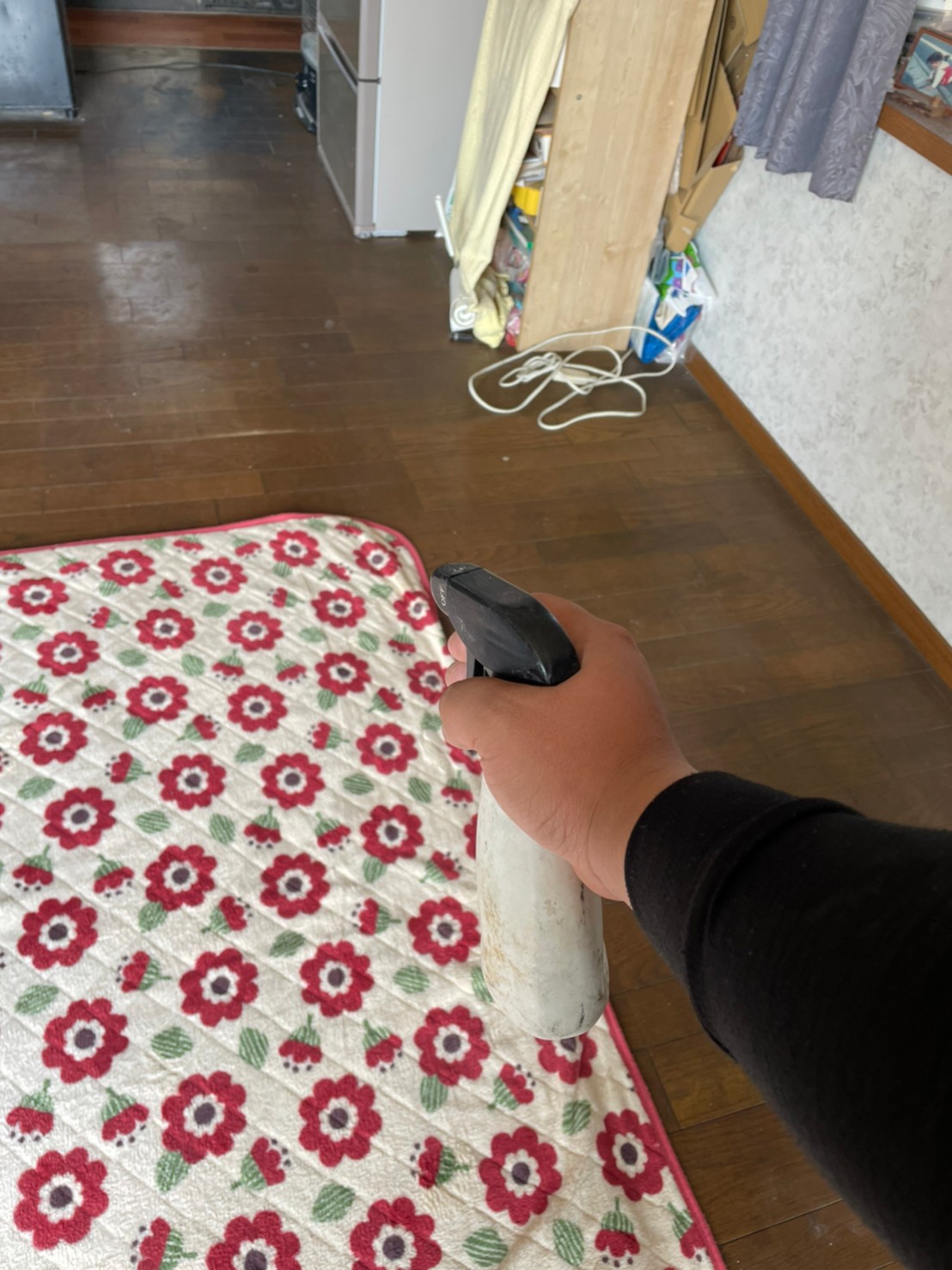 封鎖作業の後は、糞清掃や殺菌・消毒、マーキング消臭、ノミ・ダニ駆除といった残りの行程を順序良く行い、終了です。