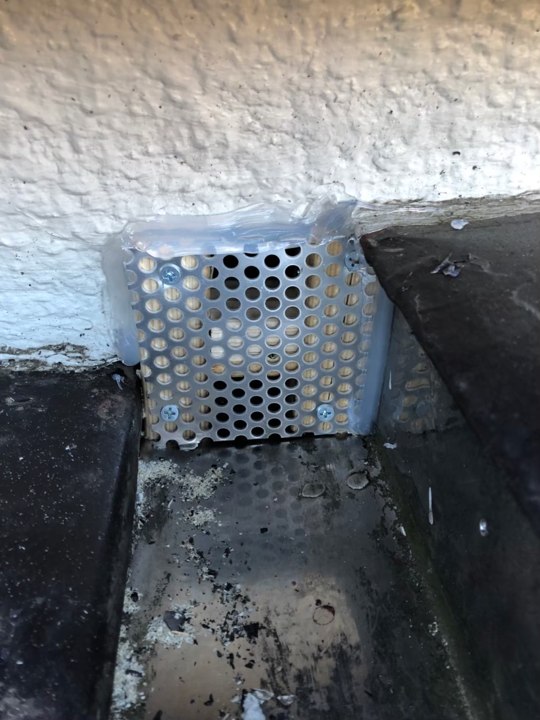 燻煙材などを使用してハクビシンを追い出し、糞などの清掃や消毒、消臭します。そして忌避剤を設置して、建物内への空気の循環は損なわれないように、パンチングメタルや金網などでしっかりと侵入口を封鎖しました。