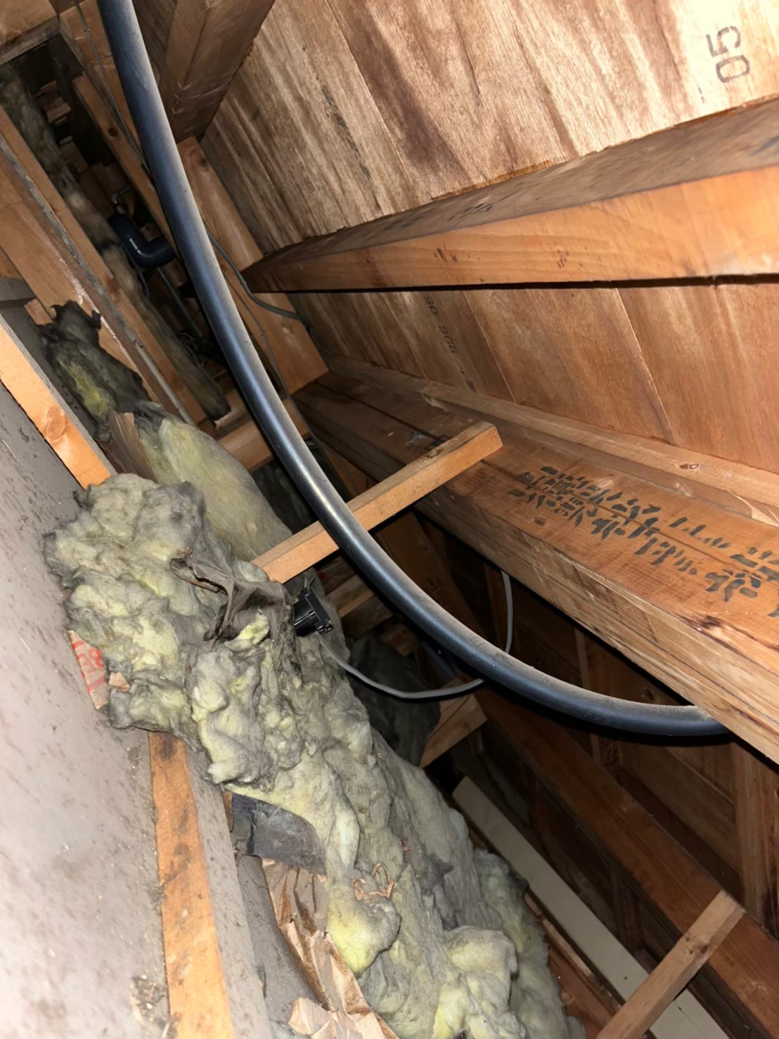 天井を走り回る騒音や糞にお困りでご相談いただきました。現地調査を行ったところ、建物の隙間や通気口などからハクビシンが建物内へ侵入しており、天井裏は断熱材を荒らしたり糞をしたりと衛生状態も悪くなっていました。