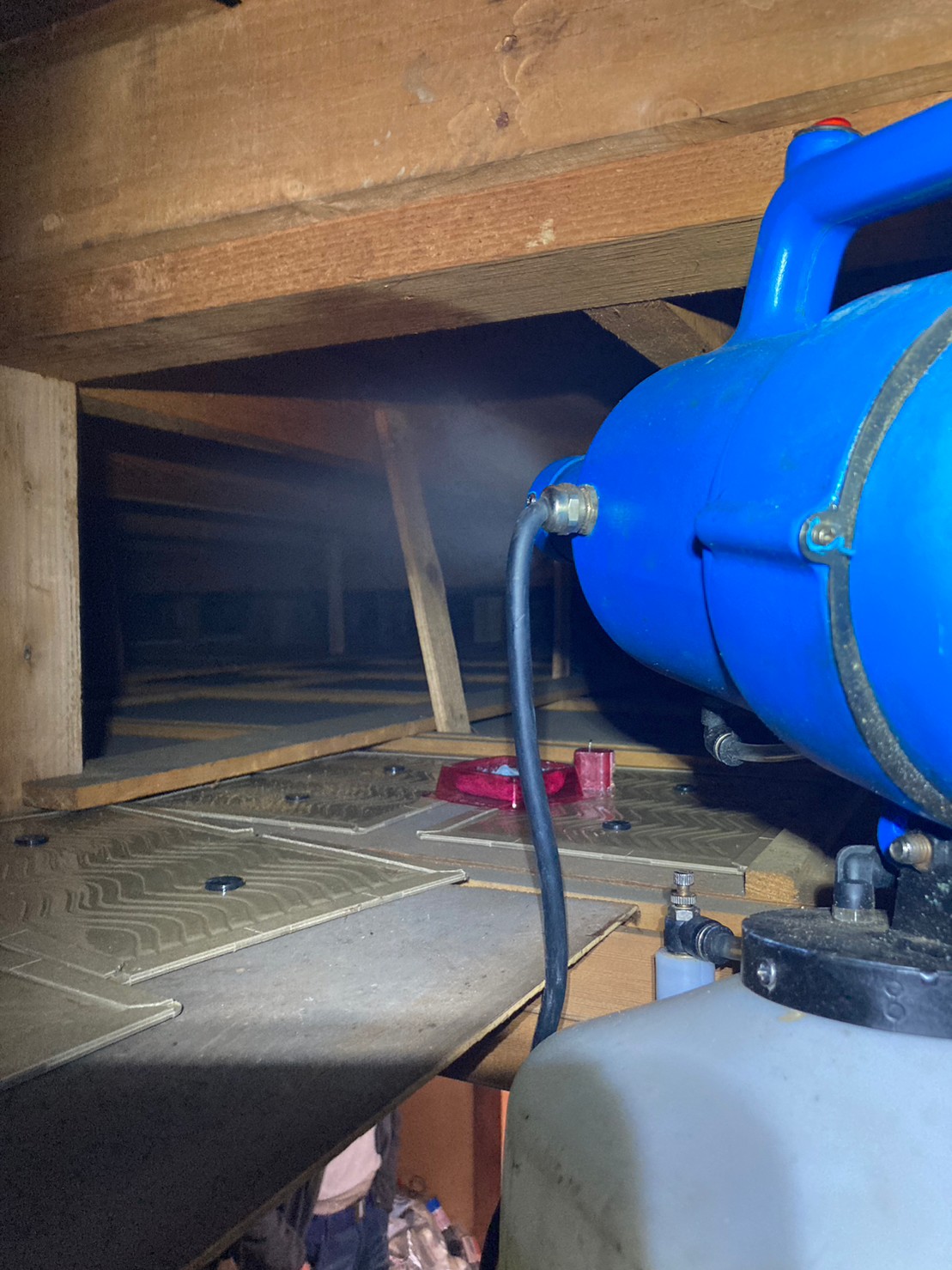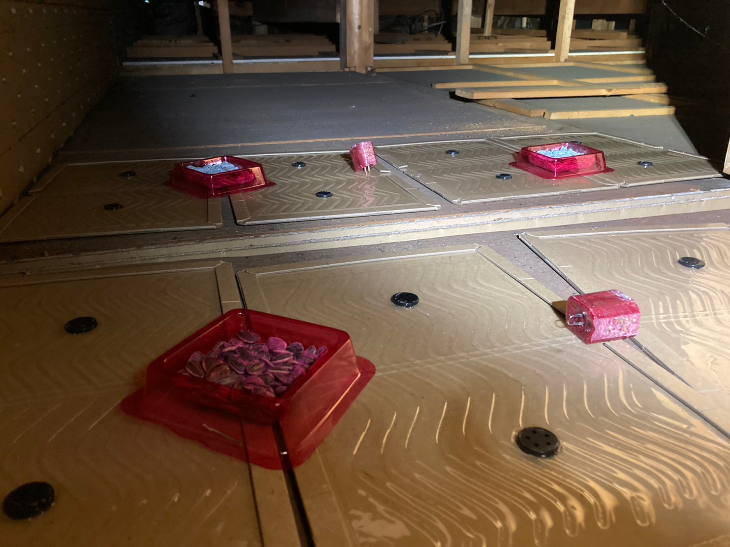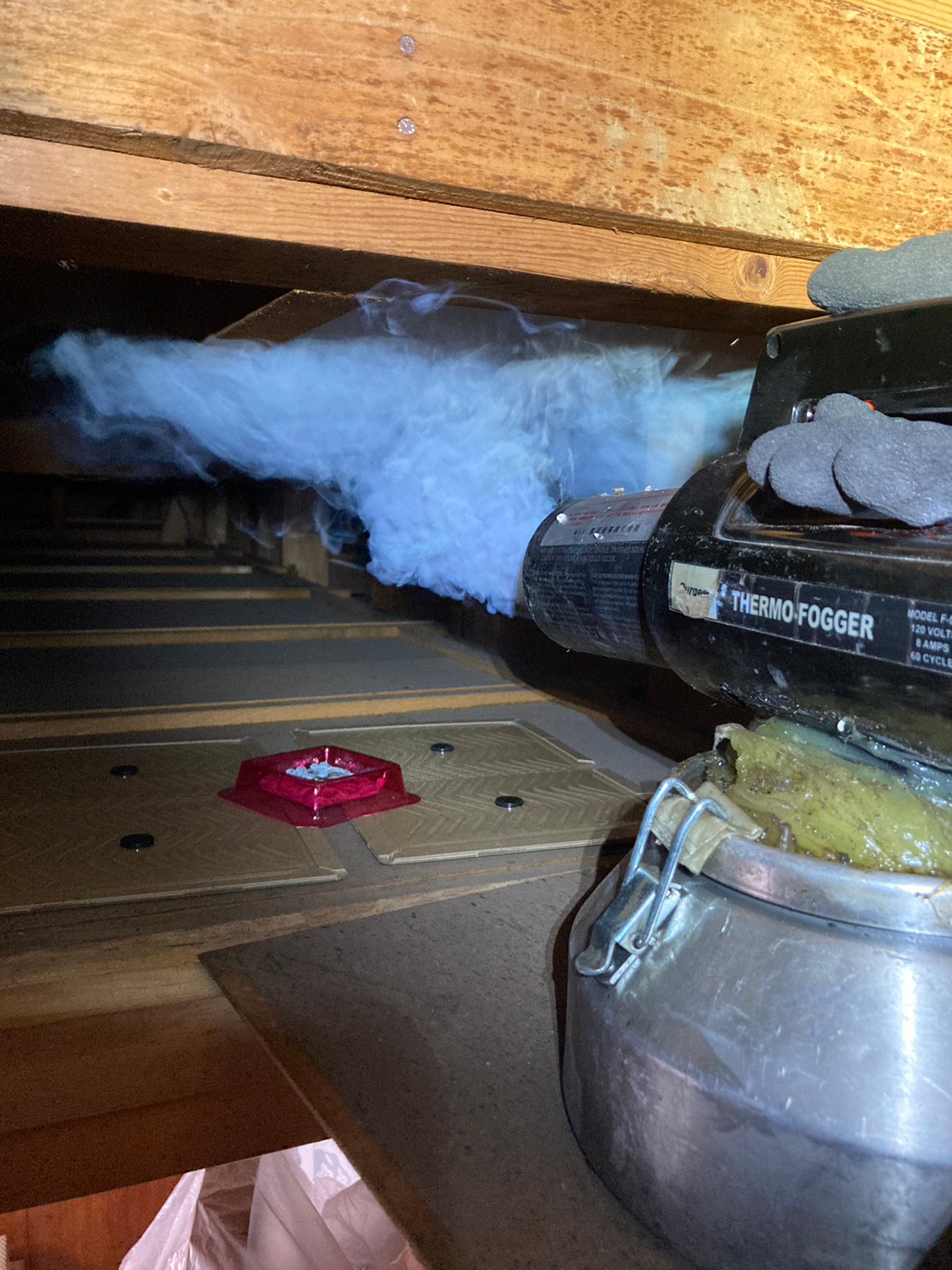 まずは、燻煙剤と呼ばれる薬剤を天井裏や床下に投入することで、ネズミを追い出していきます。