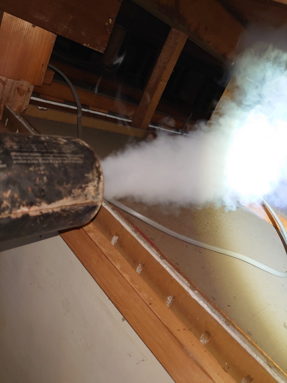 まずは、燻煙剤と呼ばれる薬剤を天井裏や床下に投入することで、コウモリを追い出していきます。