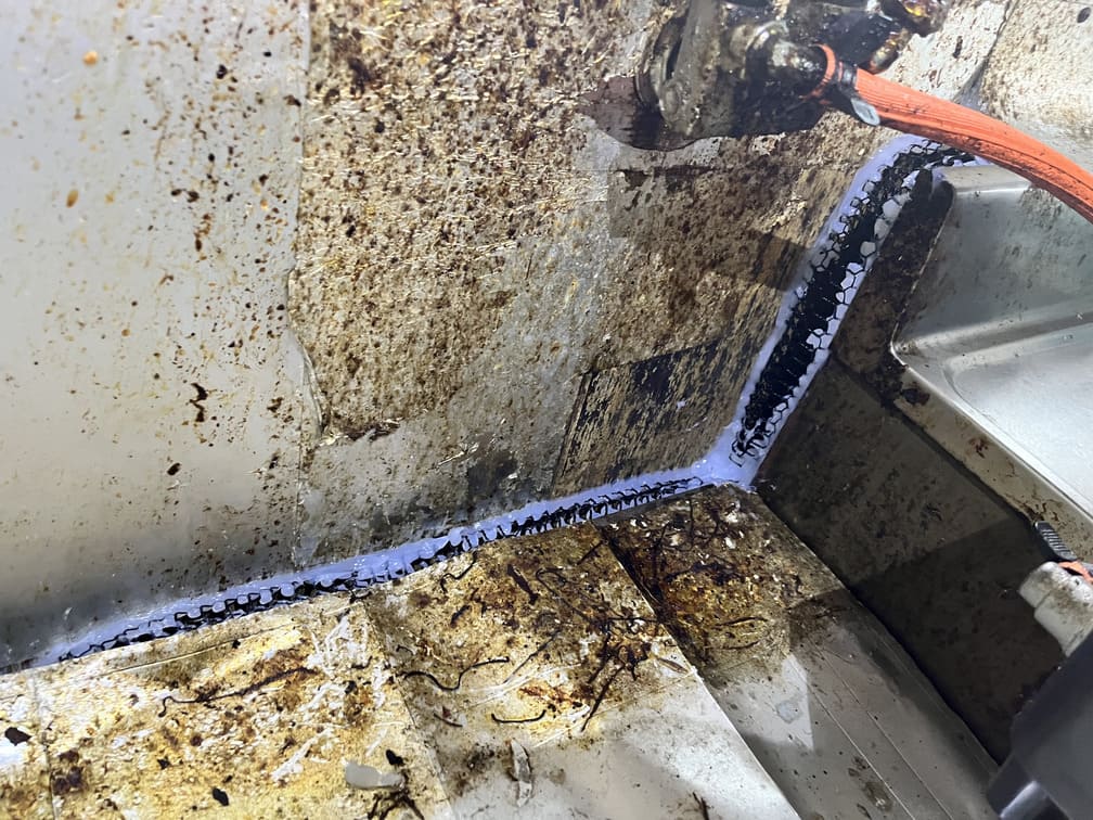 • ②パンチングメタルや金網、コーキング剤などで侵入経路を徹底的に封鎖