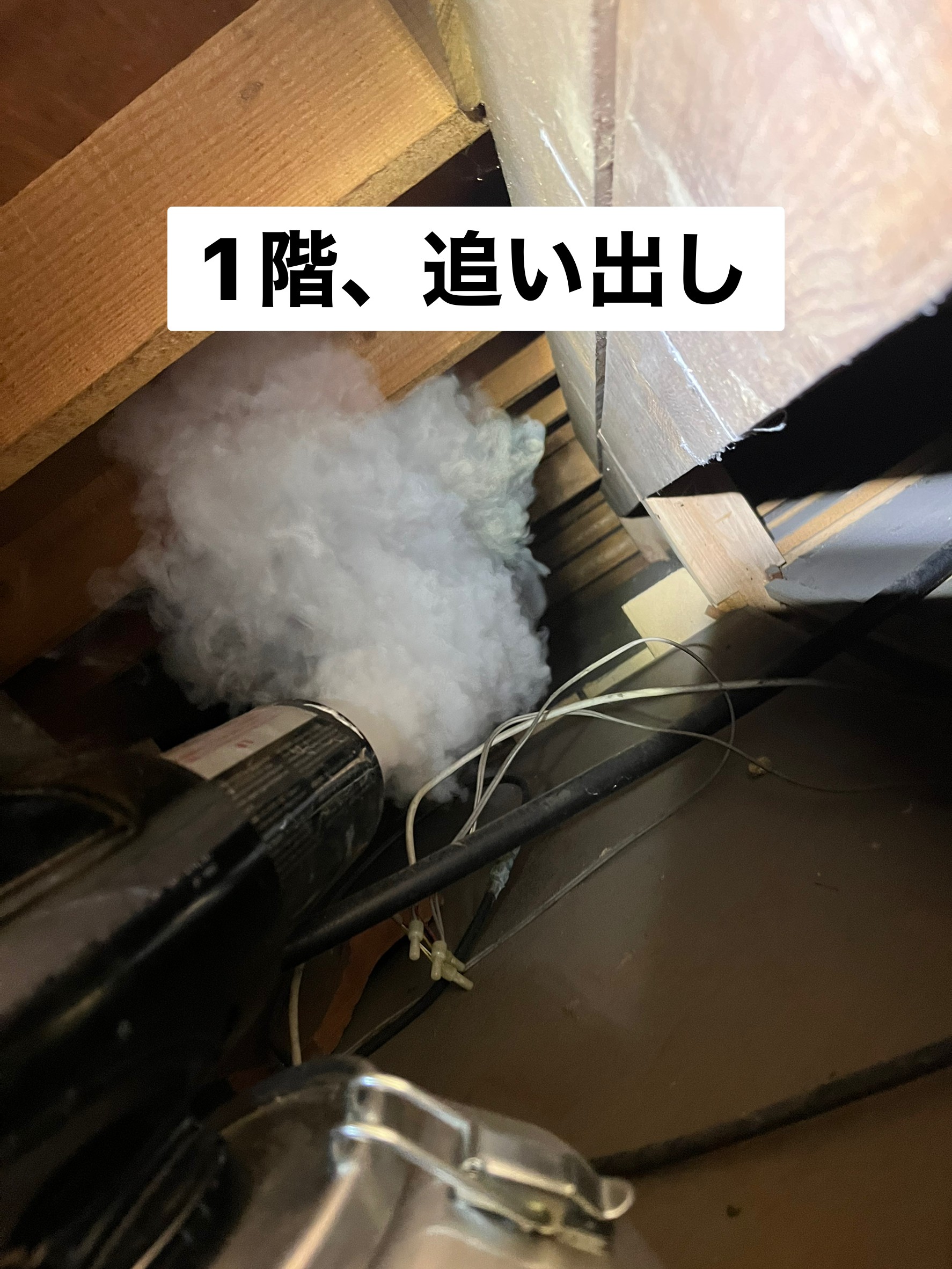 まずは、燻煙剤と呼ばれる薬剤を天井裏や床下に投入することで、ネズミを追い出していきます。