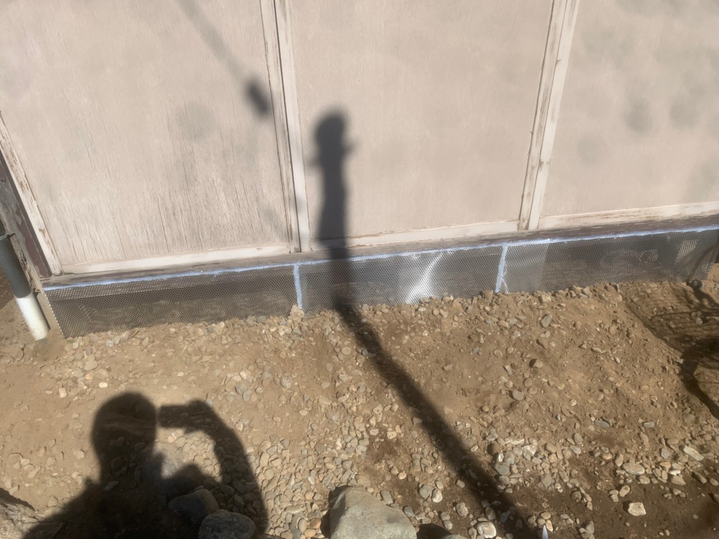 続いて、ハクビシンの再侵入を防ぐために、パンチングメタルや金網、コーキング剤などを用いて侵入経路の封鎖を行います。