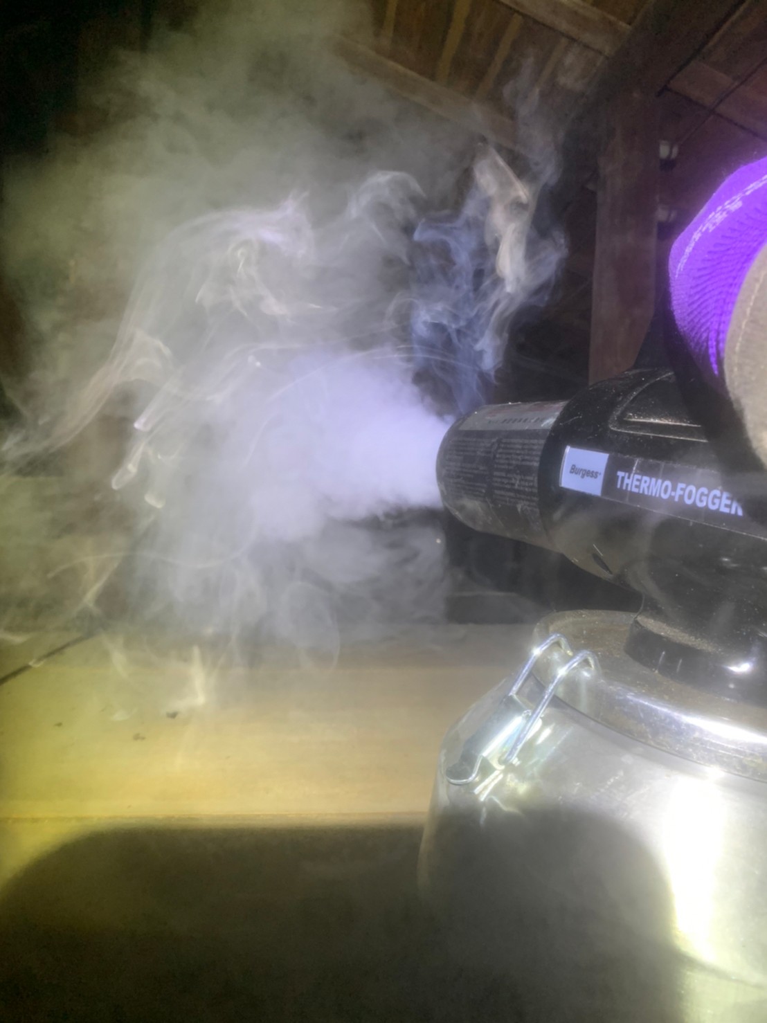 まずは、燻煙剤を使って屋内に潜んでいるハクビシンを追い出します。