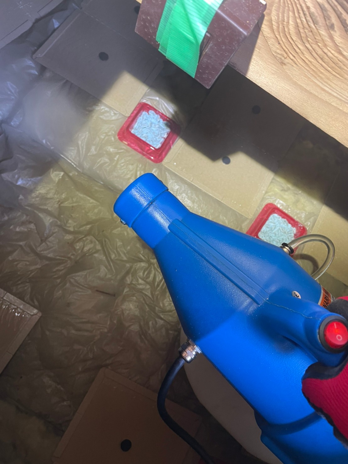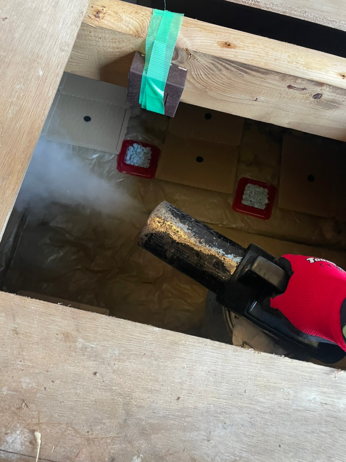 まずは、燻煙剤と呼ばれる薬剤を天井裏や床下に投入することで、ネズミを追い出していきます。