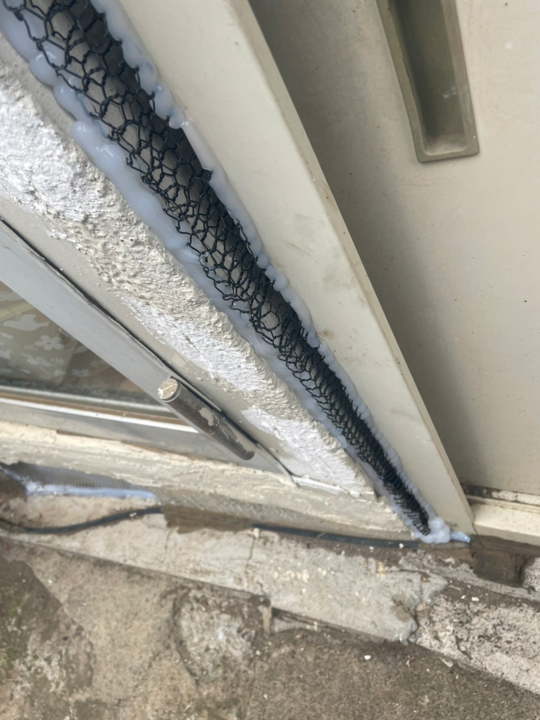 続いて、ネズミの再侵入を防ぐために、パンチングメタルや金網、コーキング剤などを用いて侵入経路の封鎖を行います。