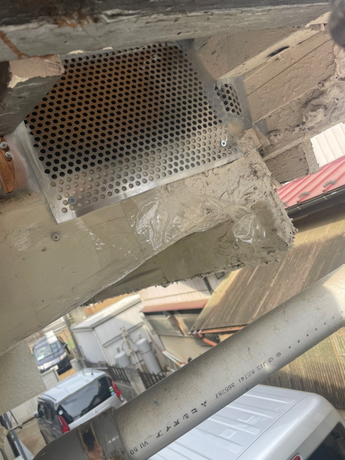 外壁の隙間やエアコン配管の隙間、床下通風口等がネズミの侵入経路と疑われました。
