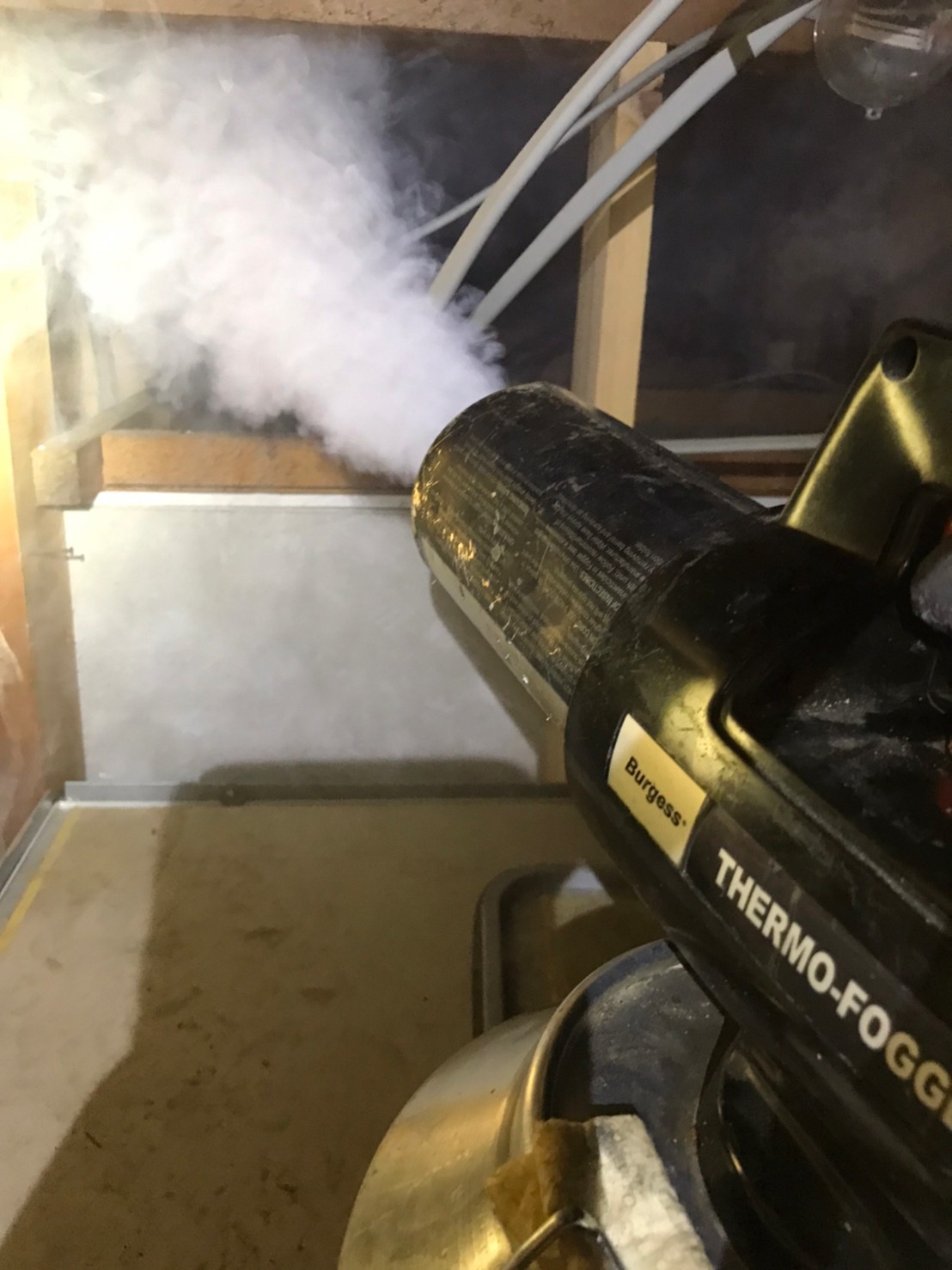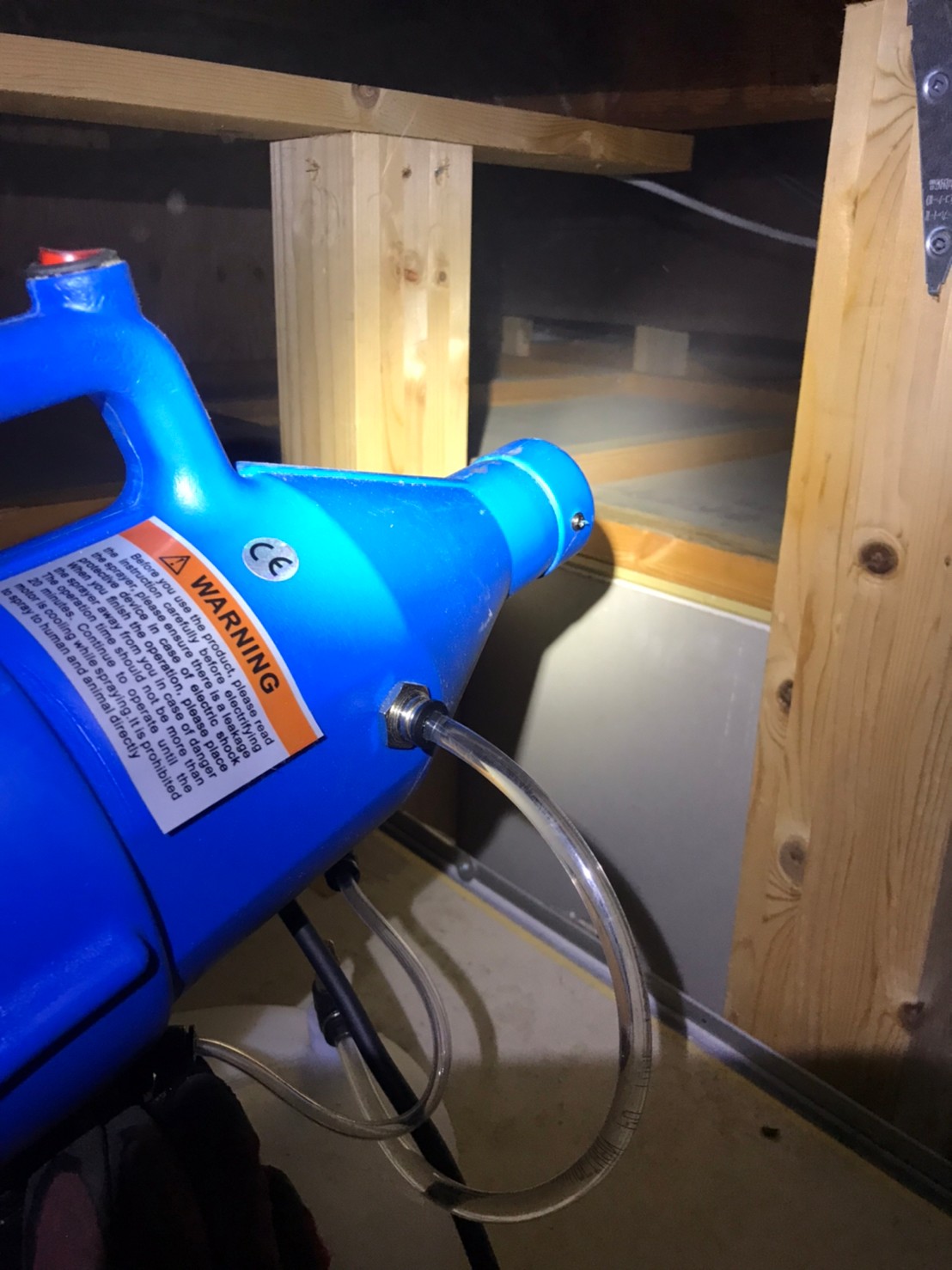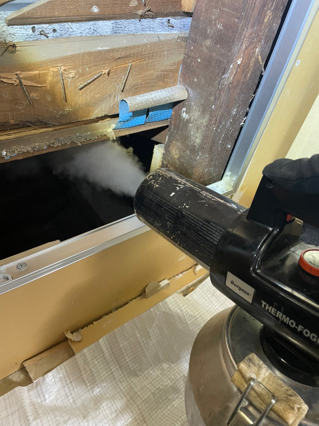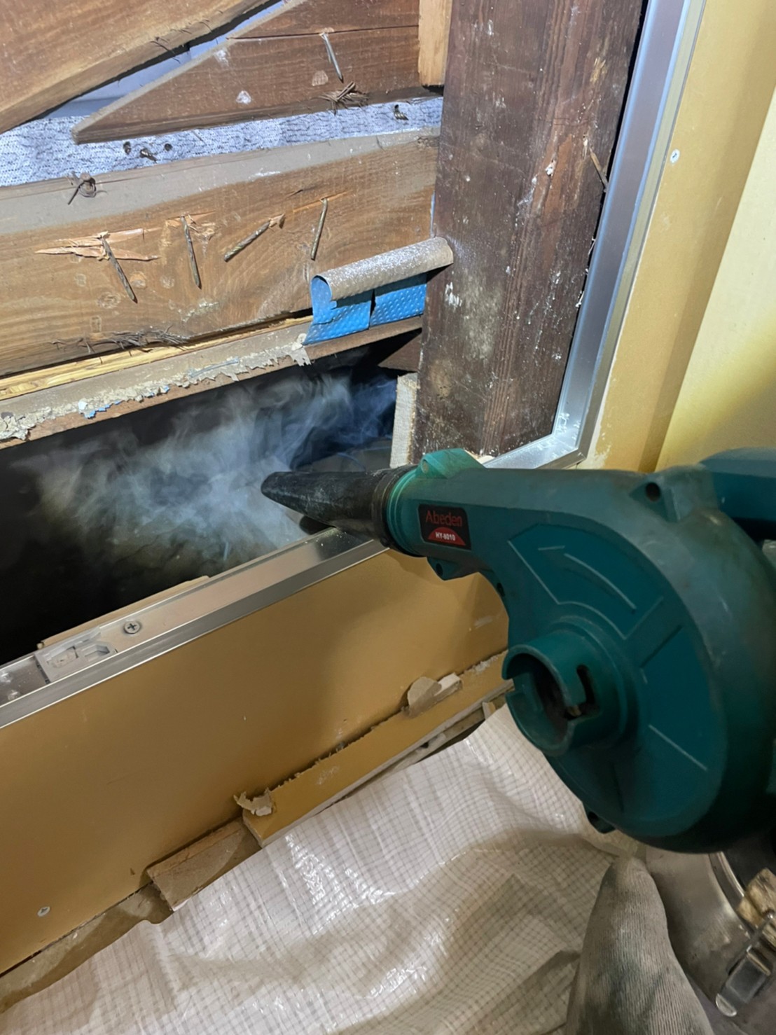 まずは、燻煙剤と呼ばれる薬剤を天井裏や床下に投入することで、ハクビシンを追い出していきます。