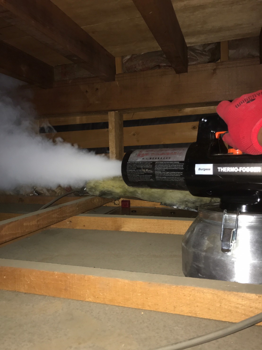 まずは、燻煙剤と呼ばれる薬剤を天井裏や床下に投入することで、ネズミを追い出していきます。