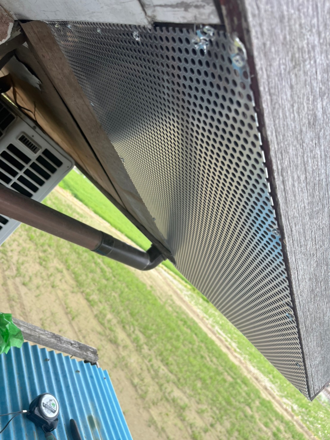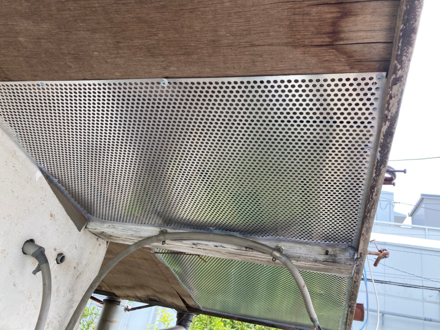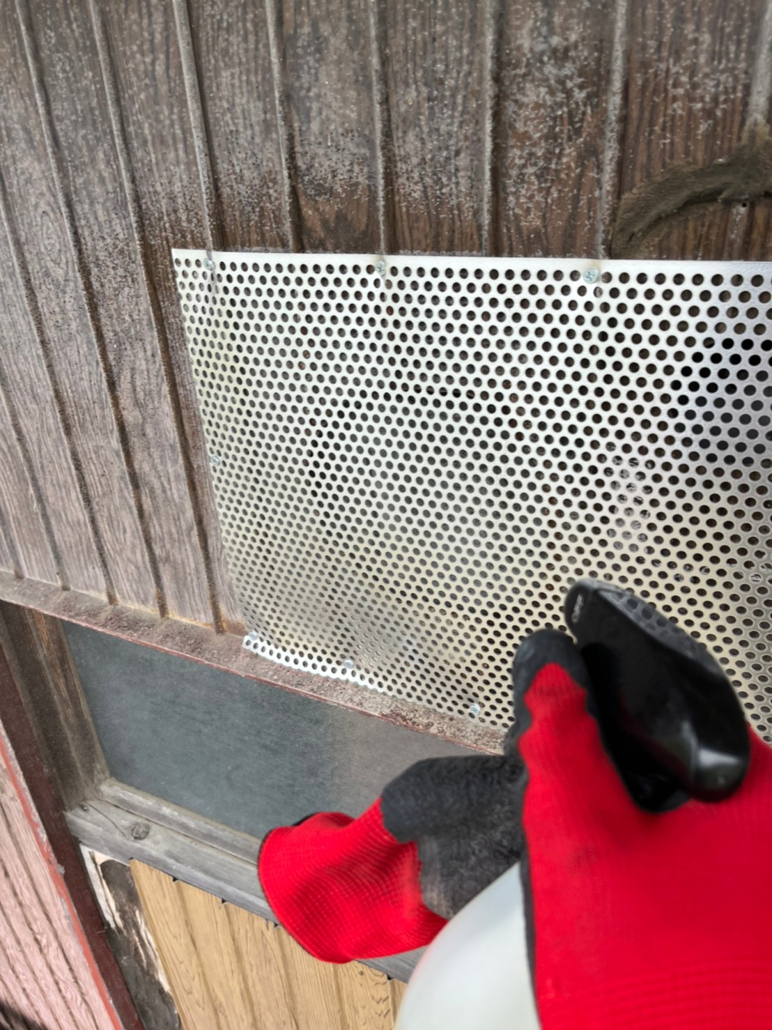 続いて、パンチングメタルや金網、コーキング剤などを用いて、あらゆる侵入経路を封鎖していきます。これによりハクビシンに限らず、他の害獣の再侵入も防ぐことができます。