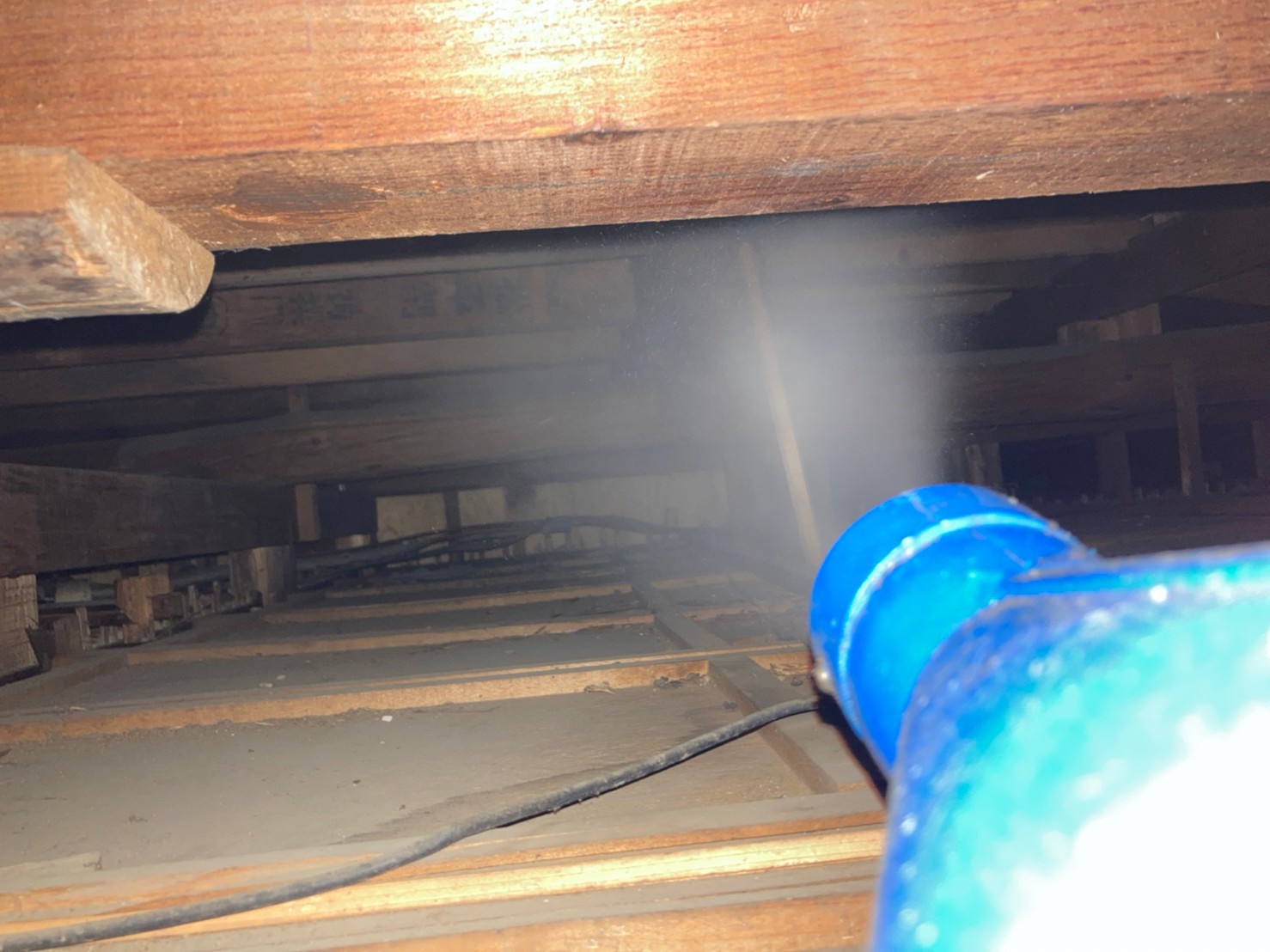 まずは、燻煙剤と呼ばれる薬剤を天井裏や床下に投入することで、ハクビシンを追い出していきます。