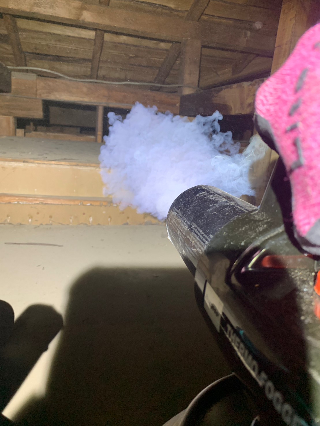 まずは、燻煙剤と呼ばれる薬剤を天井裏や床下に投入することで、ハクビシンを追い出していきます。