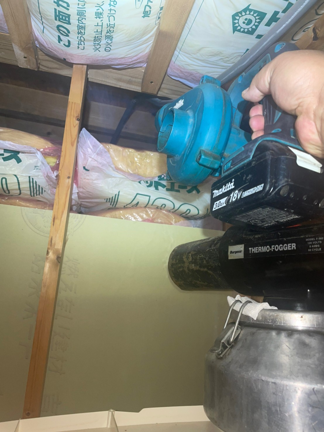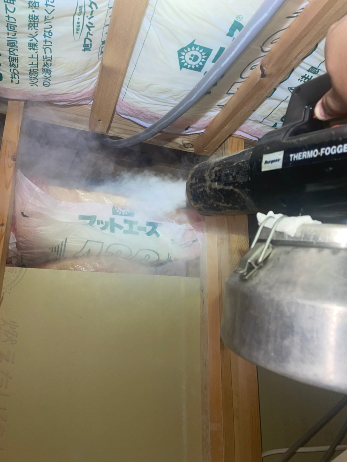 まずは、燻煙剤と呼ばれる薬剤を天井裏や床下に投入することで、コウモリを追い出していきます。