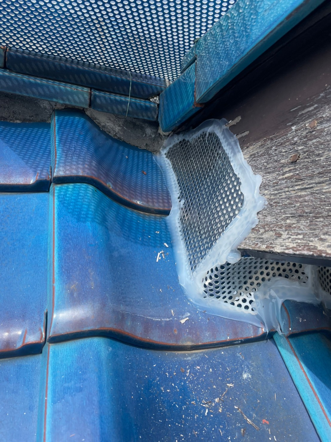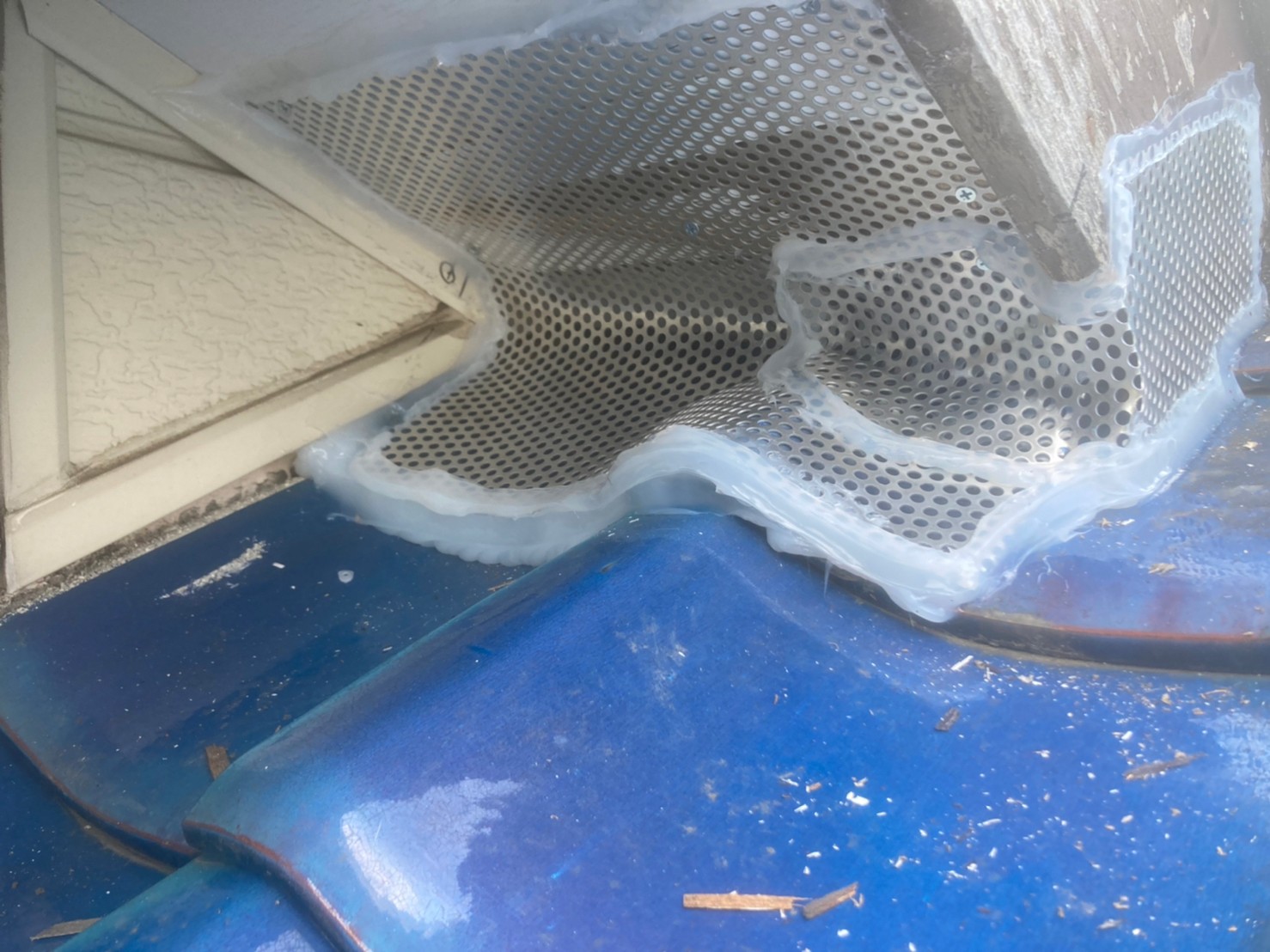 続いて、パンチングメタルや金網、コーキング剤などを用いて、あらゆる侵入経路を封鎖していきます。これによりハクビシンに限らず、他の害獣の再侵入も防ぐことができます。