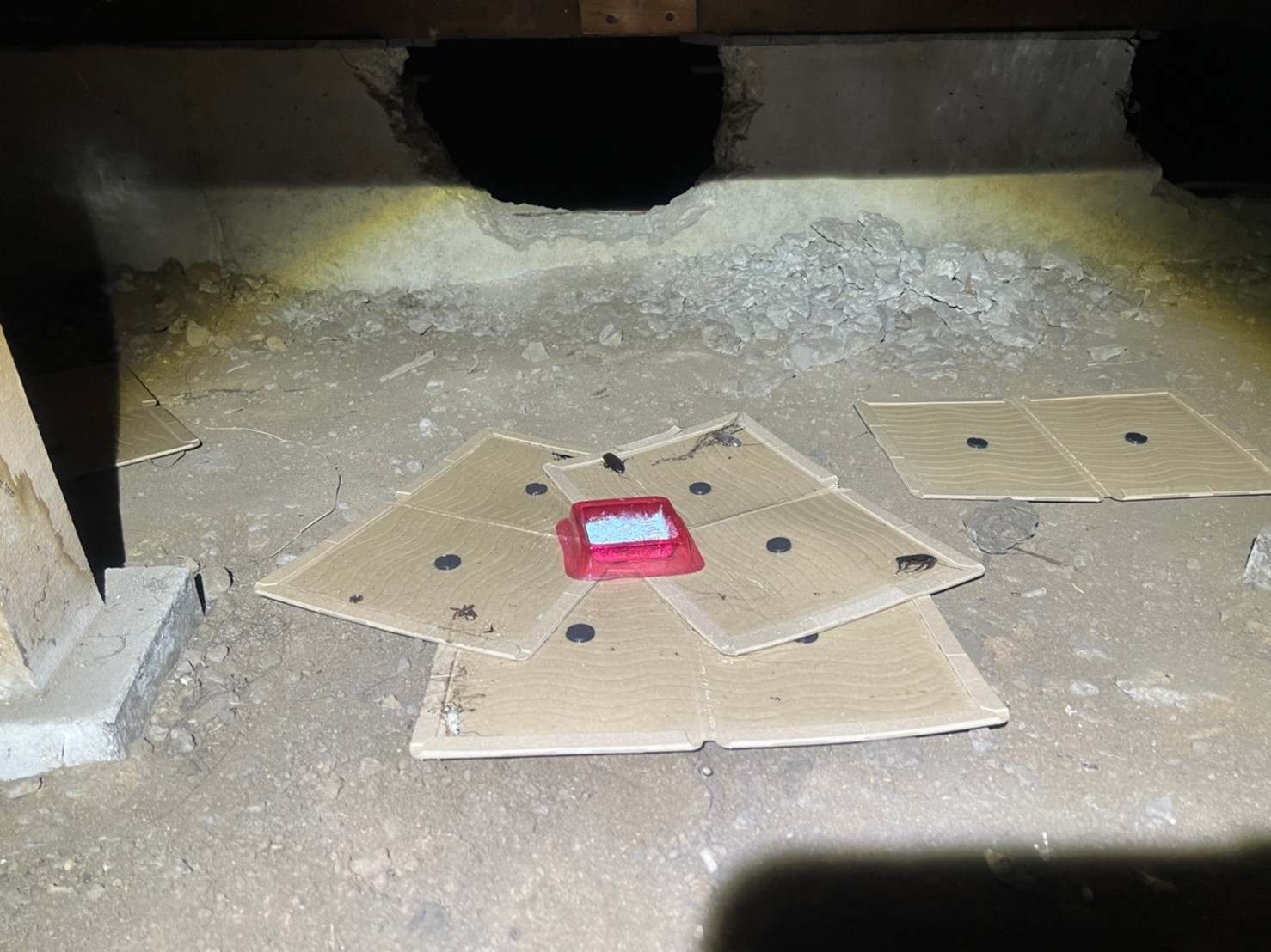 最後に、糞清掃や殺菌・消毒、マーキング消臭、ノミ・ダニ駆除、毒エサ・トラップ設置といった残りの作業を行い、駆除~再発防止までの工程が全て終了します。