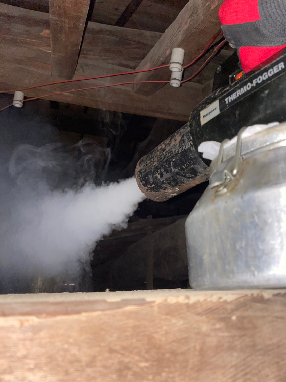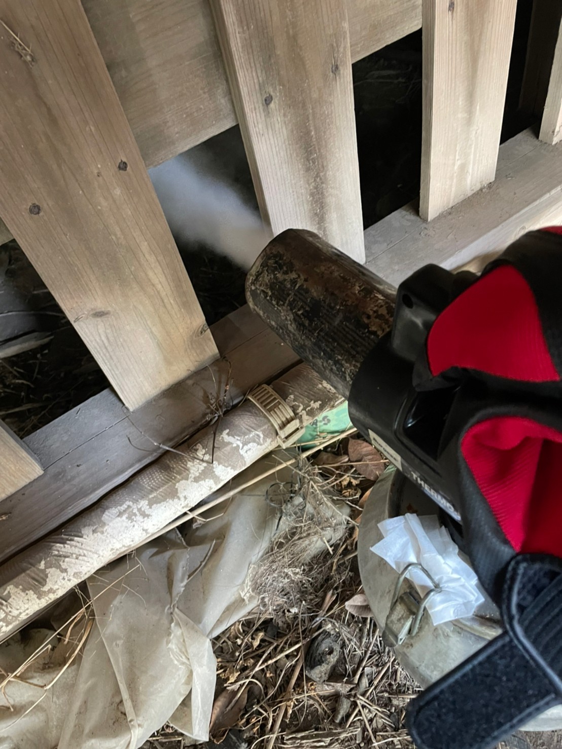 まずは、燻煙剤と呼ばれる薬剤を天井裏や床下に投入することで、ハクビシンを追い出していきます。