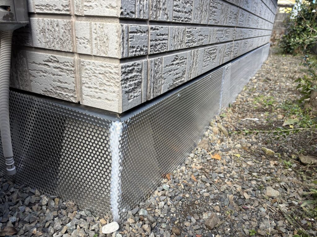 • ②パンチングメタルや金網、コーキング剤などですべての侵入経路を封鎖します。