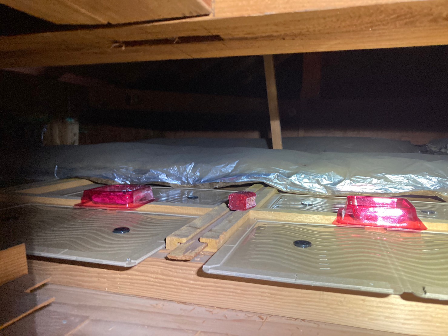 最後に、糞清掃や殺菌・消毒、マーキング消臭、ノミ・ダニ駆除、毒エサ・トラップ設置といった残りの作業を行い、駆除~再発防止までの工程が全て終了します。