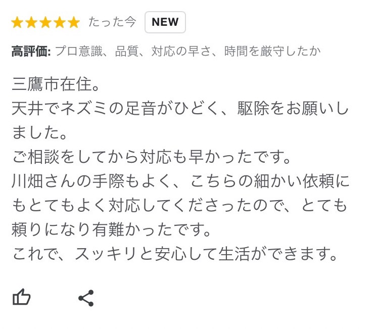 「もっと早く頼んでおけばよかった」と後悔しないためにも、被害が小さいうちに私たち「プロ」にお任せください。