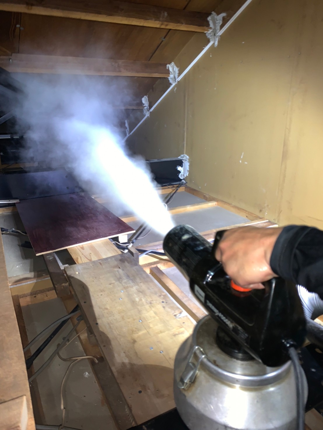 まずは、燻煙剤を使って屋内に潜んでいるネズミを追い出します。