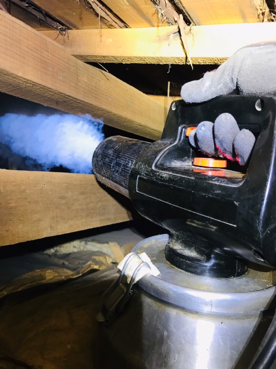 まずは、燻煙剤を使って屋内に潜んでいるネズミ、アライグマを追い出します。