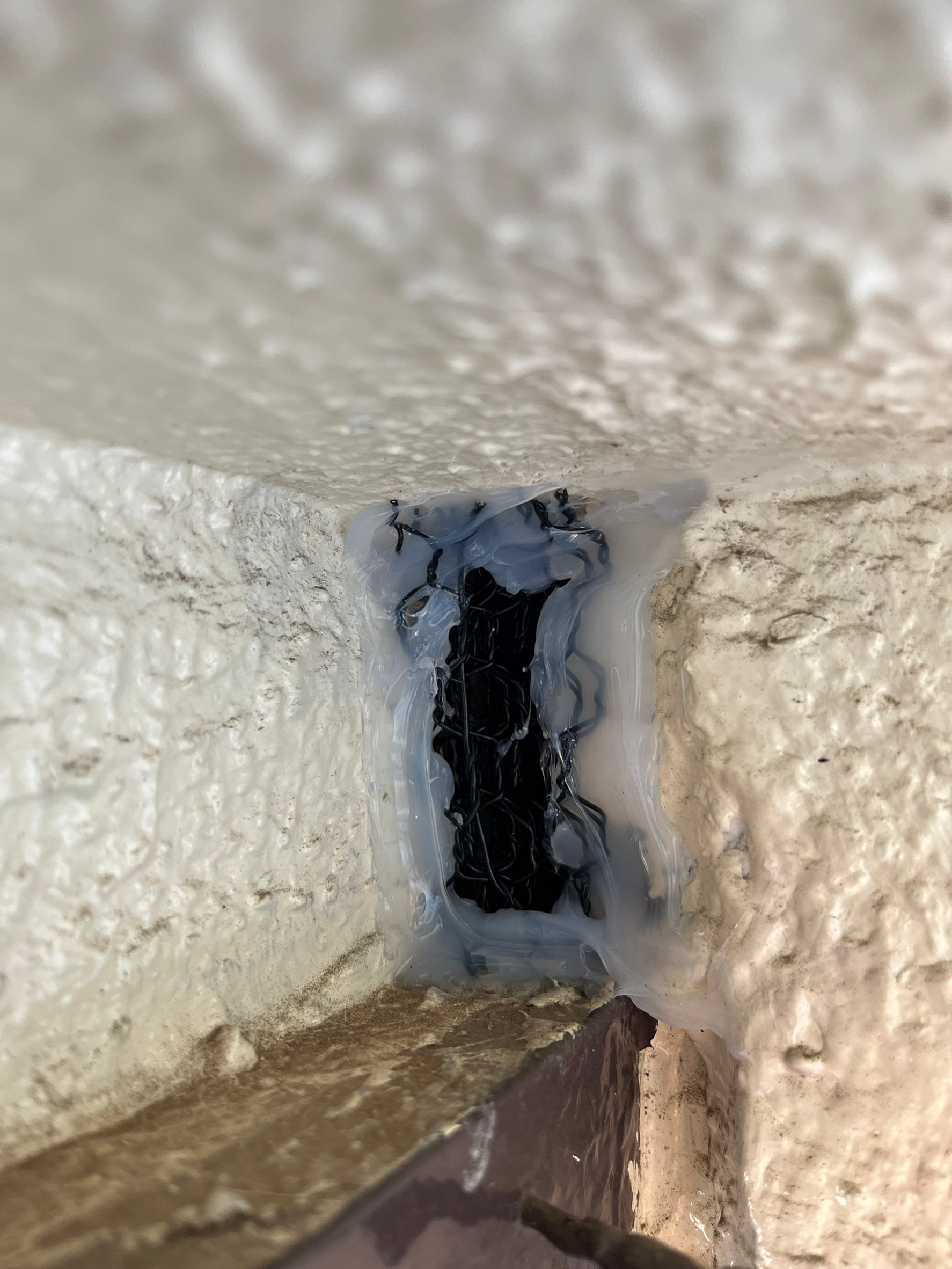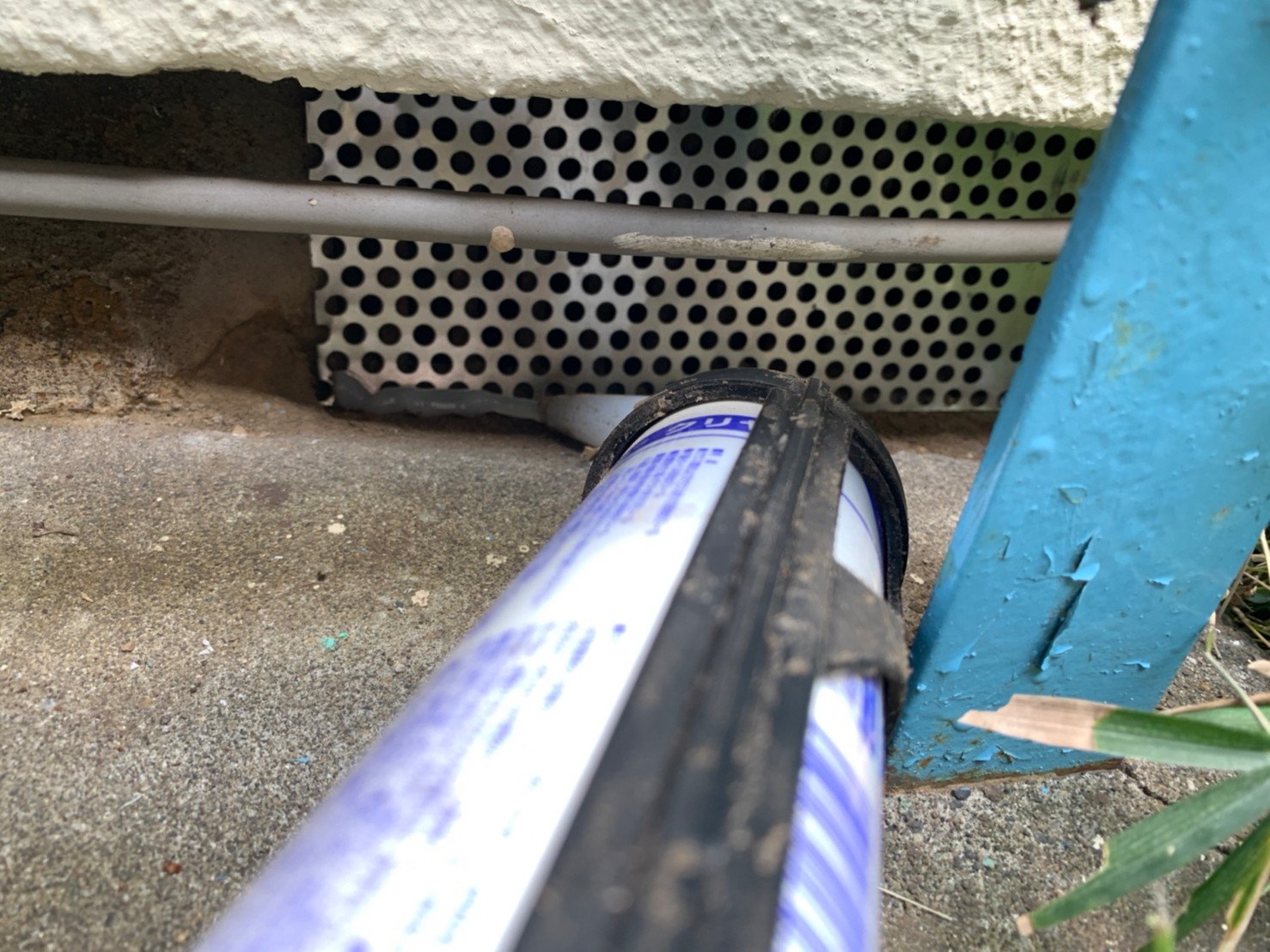 続いて、パンチングメタルや金網、コーキング剤などを用いて、あらゆる侵入経路を封鎖していきます。これによりネズミに限らず、他の害獣の再侵入も防ぐことができます。