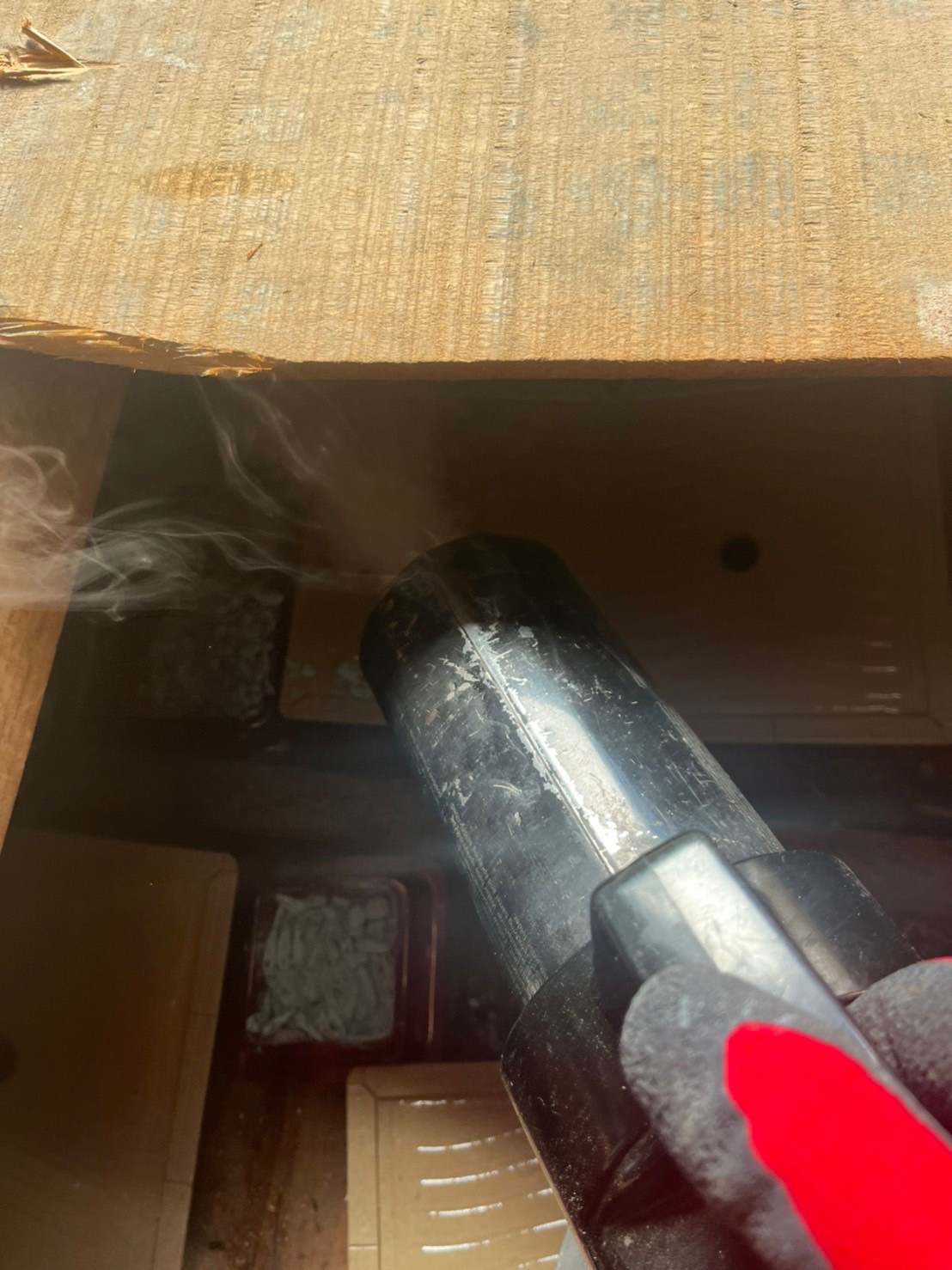 まずは、燻煙剤と呼ばれる薬剤を天井裏や床下に投入することで、ネズミを追い出していきます。