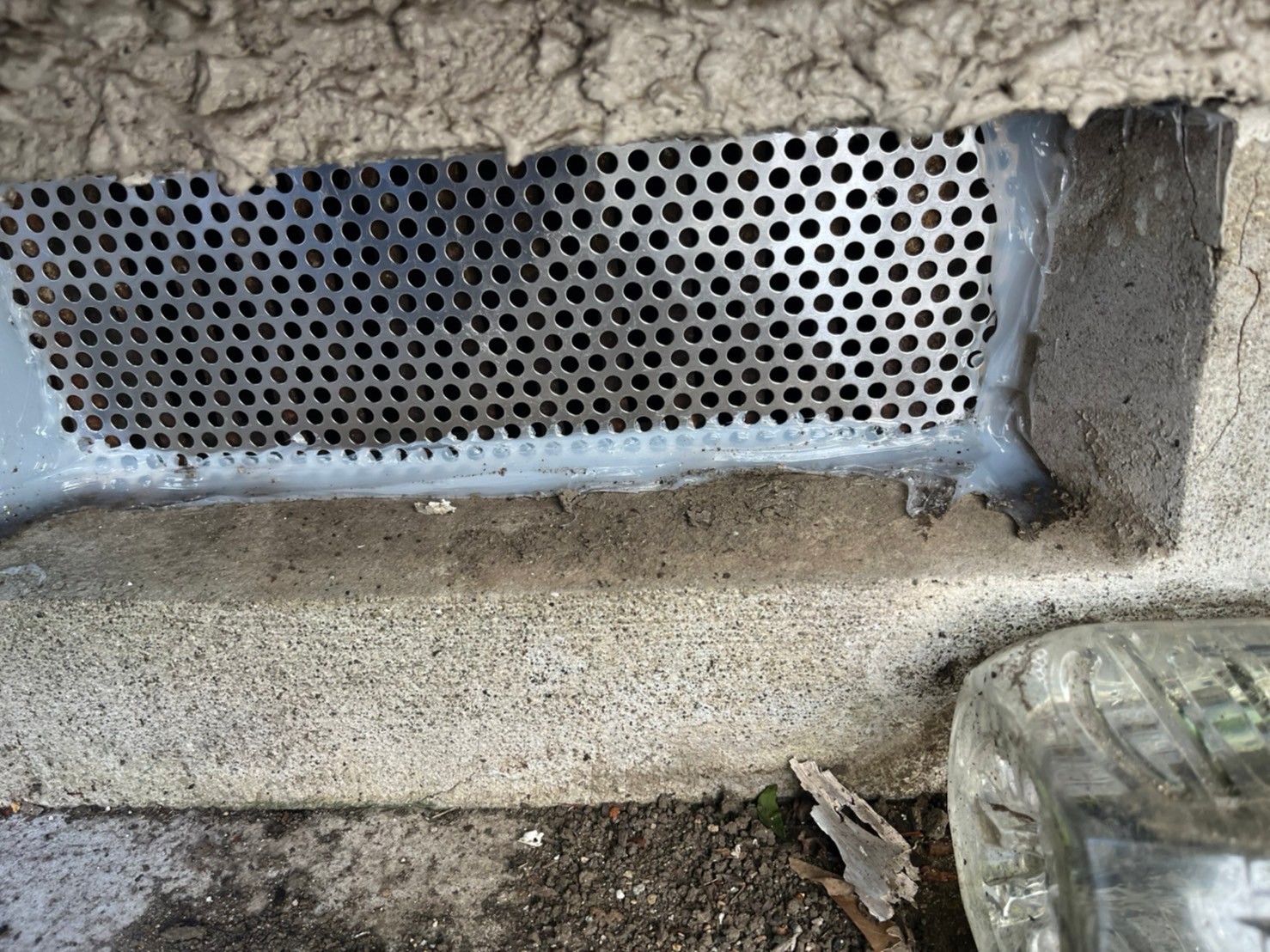続いて、ネズミの再侵入を防ぐために、パンチングメタルや金網、コーキング剤などを用いて侵入経路の封鎖を行います。