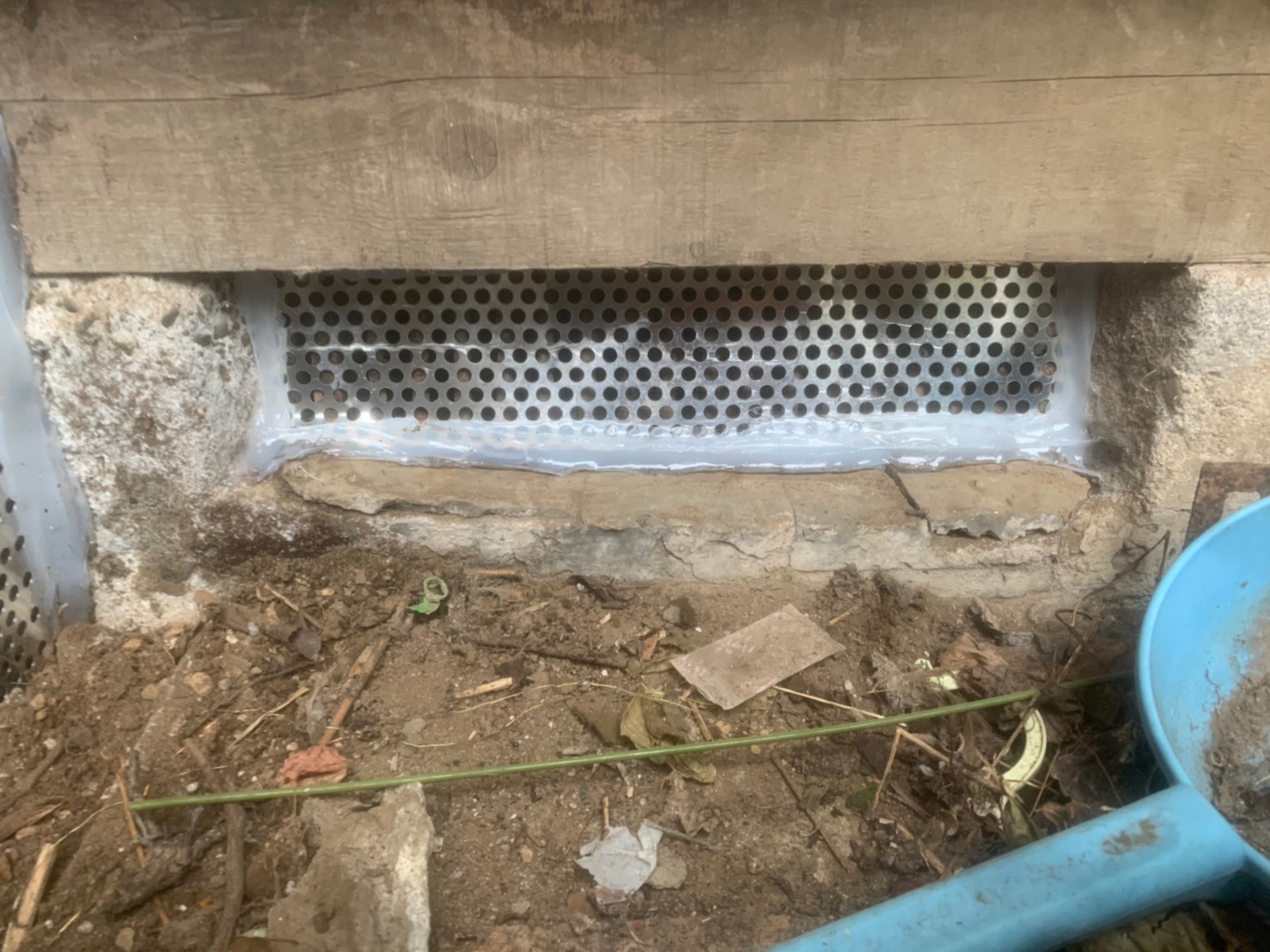 現場調査にて、床下の通気孔、また基礎部分と雨戸をしまう建具からの侵入が判明しました。