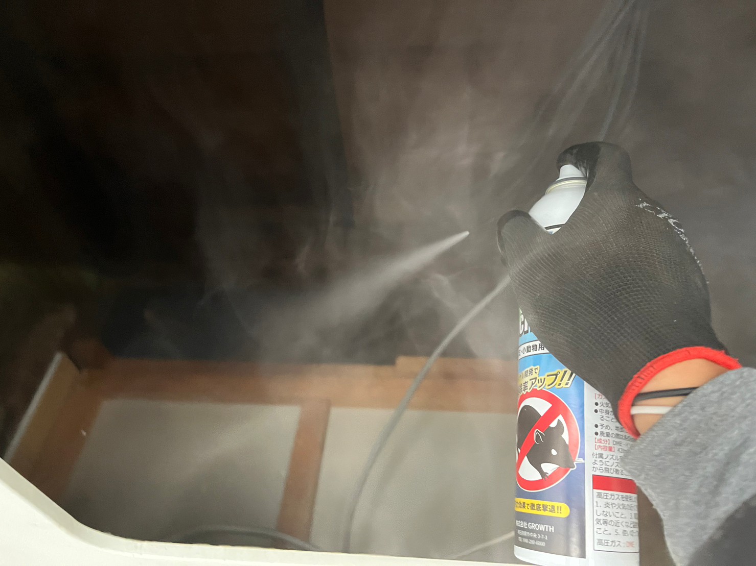 まずは、燻煙剤と呼ばれる薬剤を天井裏や床下に投入することで、ネズミを追い出していきます。