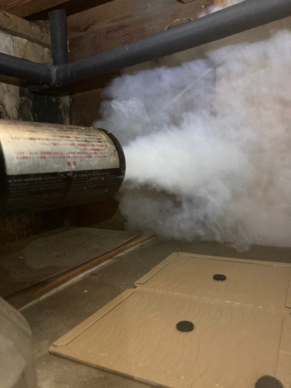 まずは、燻煙剤と呼ばれる薬剤を天井裏や床下に投入することで、ネズミを追い出していきます。