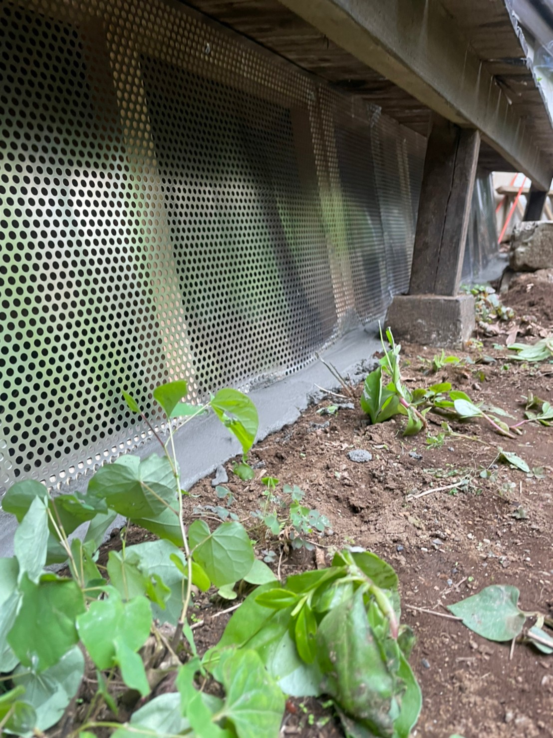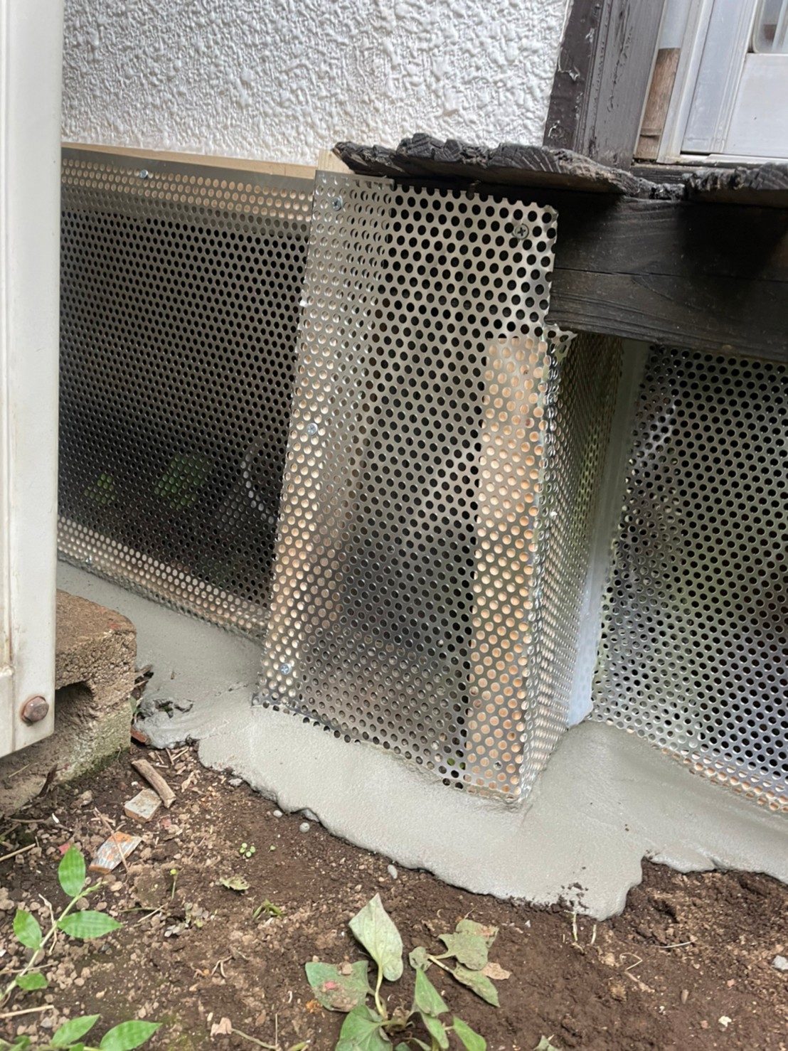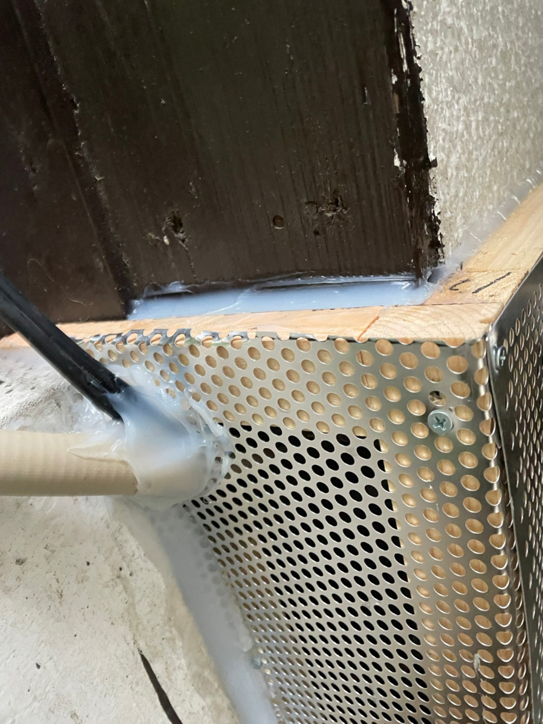 続いて、ネズミの再侵入を防ぐために、パンチングメタルや金網、コーキング剤などを用いて侵入経路の封鎖を行います。