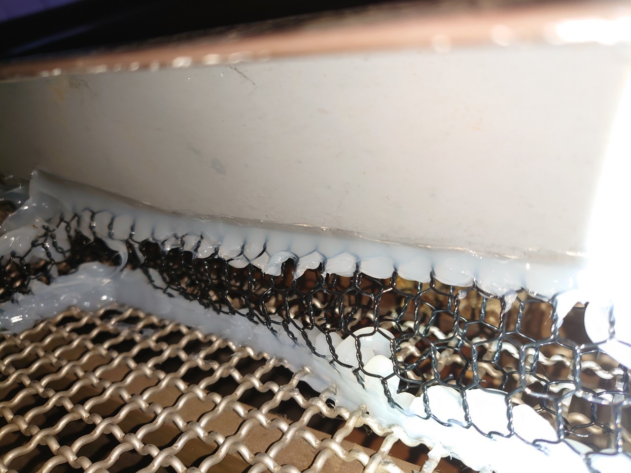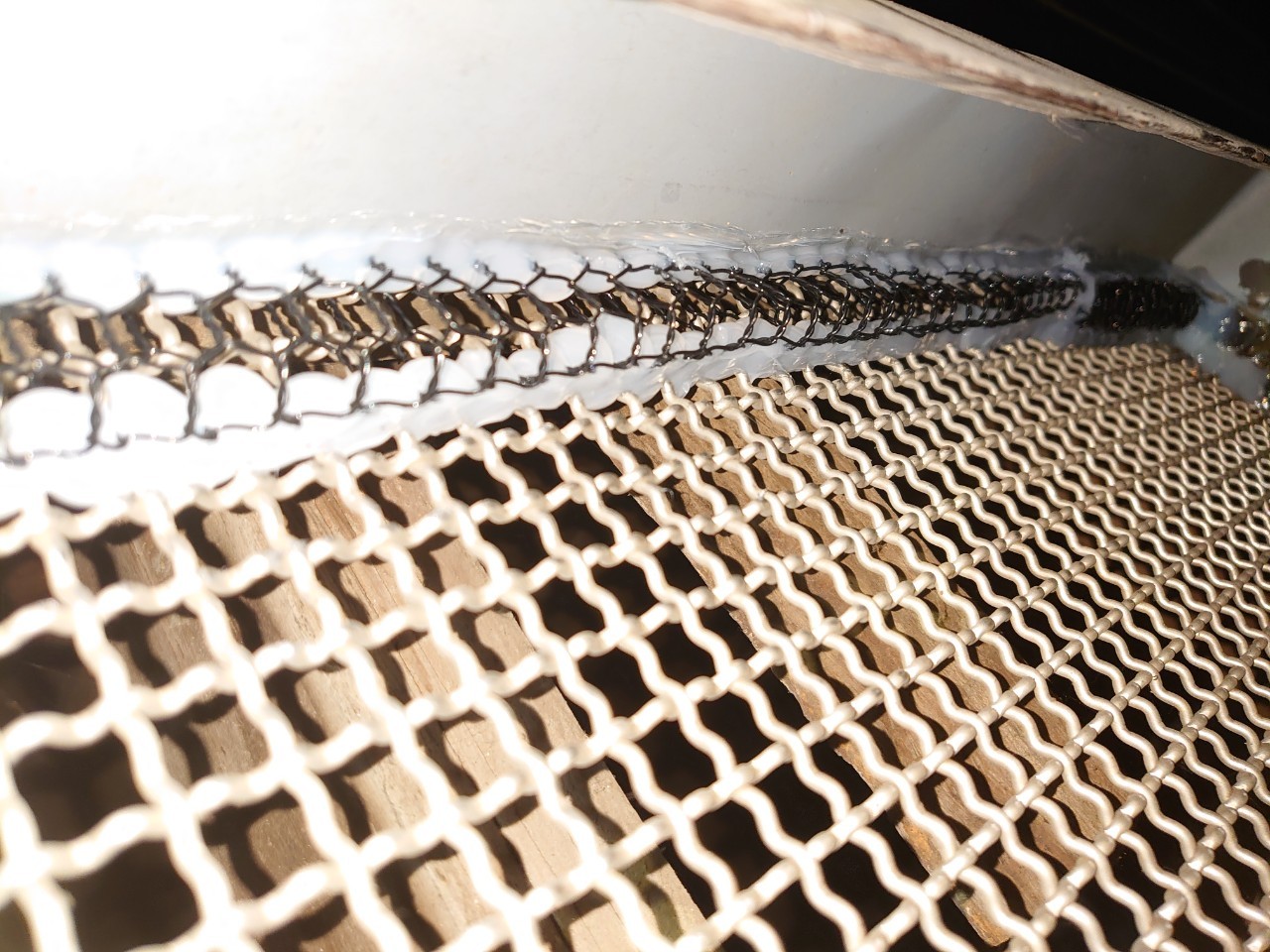 続いて、パンチングメタルや金網、コーキング剤などを用いて、あらゆる侵入経路を封鎖していきます。これによりネズミに限らず、他の害獣の再侵入も防ぐことができます。