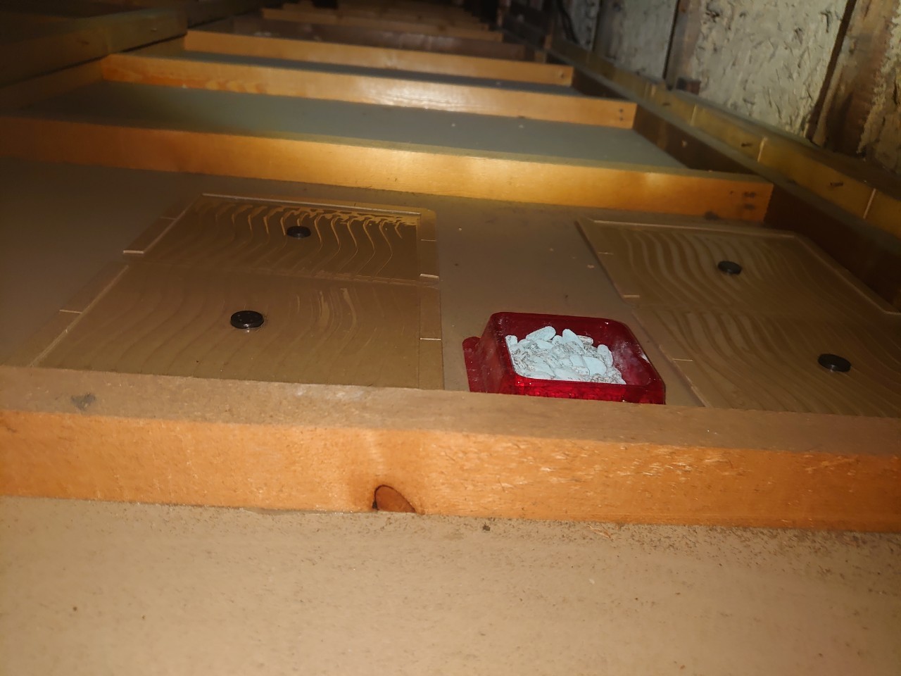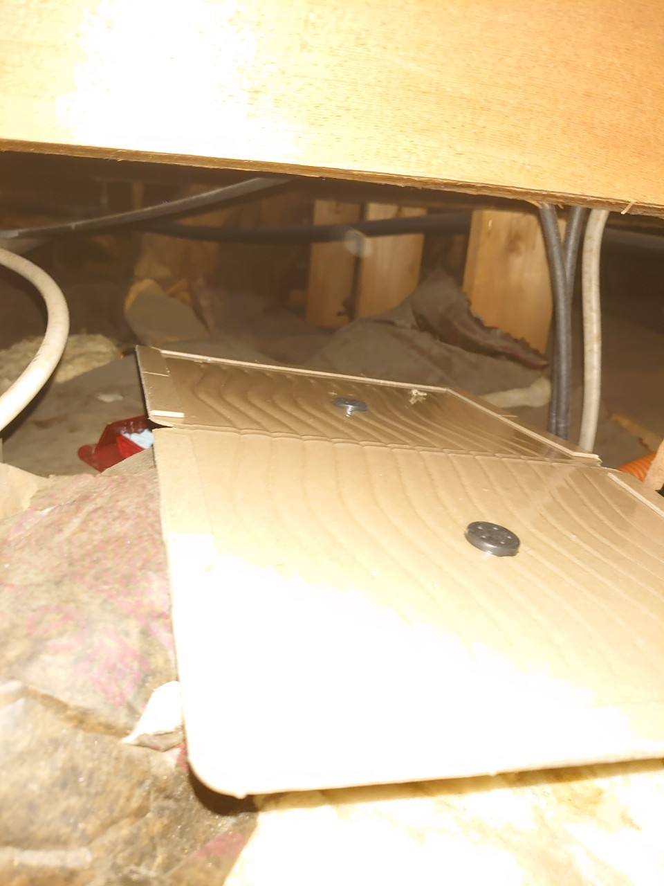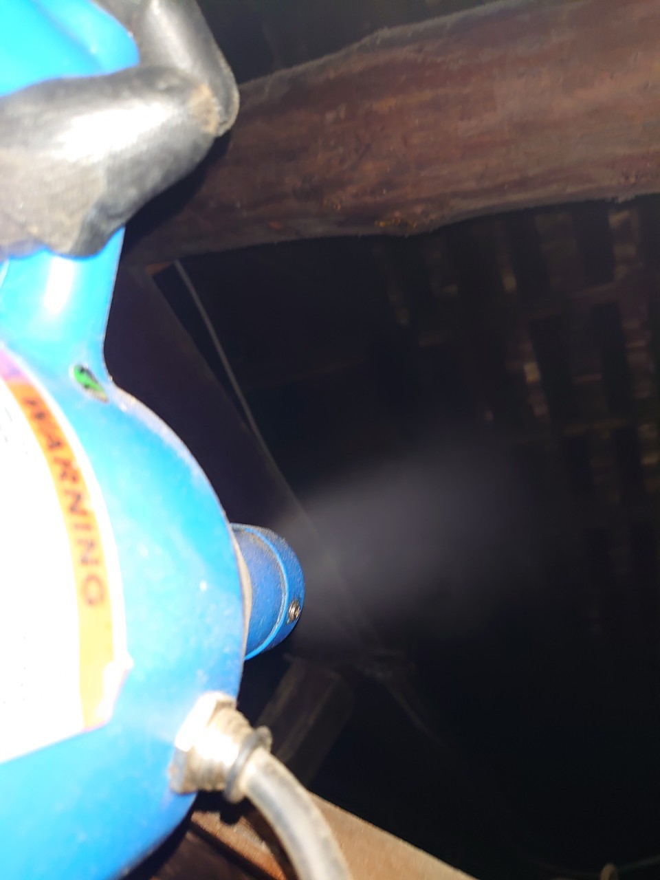 作業の初めに、ネズミの糞清掃や様々な作業を徹底して行えるように点検口を作成し、燻煙剤と呼ばれる薬剤を天井裏や床下に投入することで、ネズミを追い出していきます。