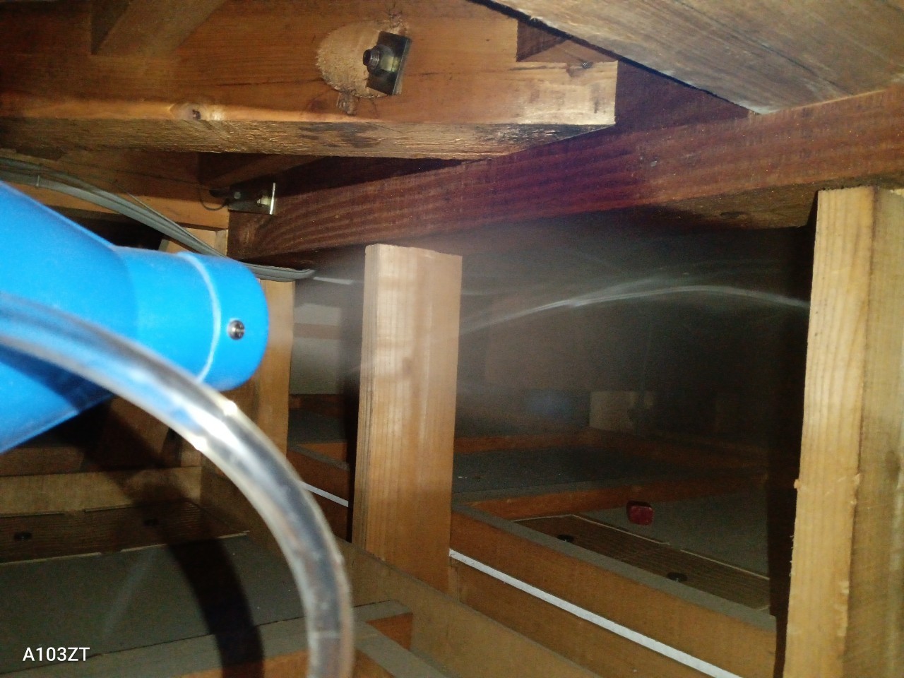 まずは、燻煙剤と呼ばれる薬剤を天井裏や床下に投入することで、ネズミを追い出していきます。