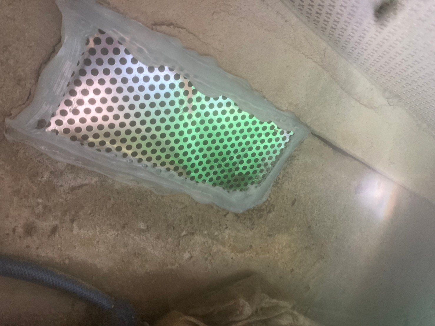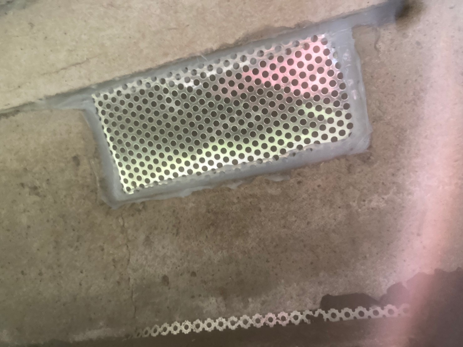 続いて、アライグマの再侵入を防ぐために、パンチングメタルや金網、コーキング剤などを用いて侵入経路の封鎖を行います。