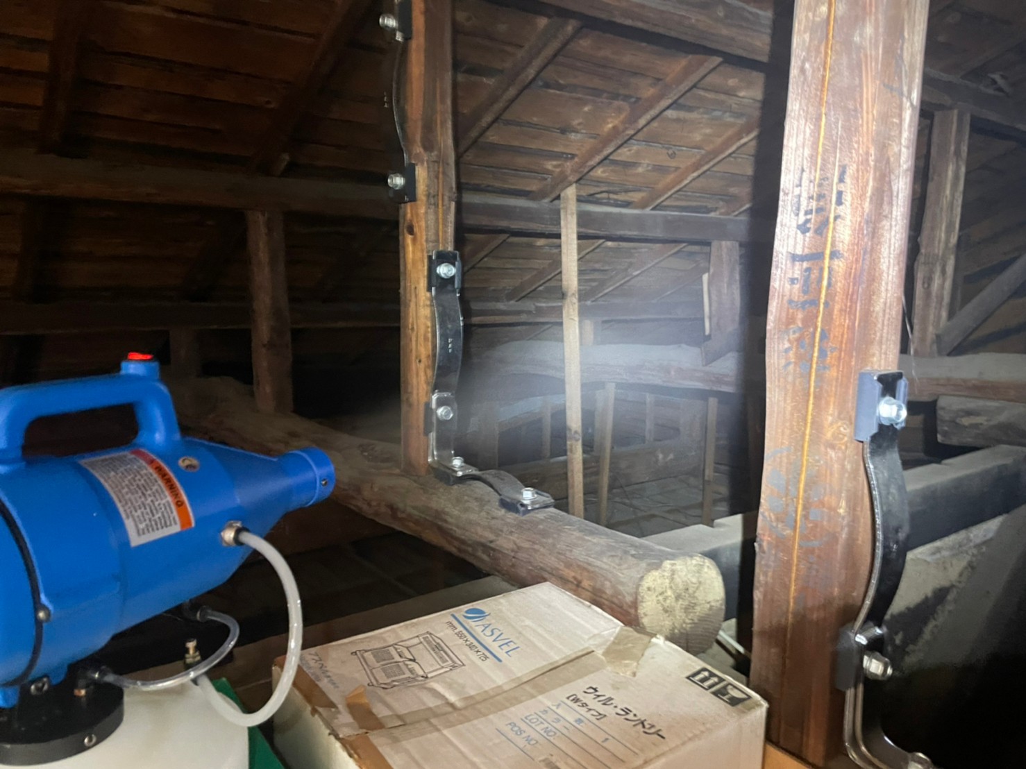 最後に、糞清掃やマーキング消臭、ノミ・ダニ駆除、忌避剤散布・設置、毒エサ・トラップ設置といった残りの作業を行い、駆除~再発防止までの工程が全て終了します。