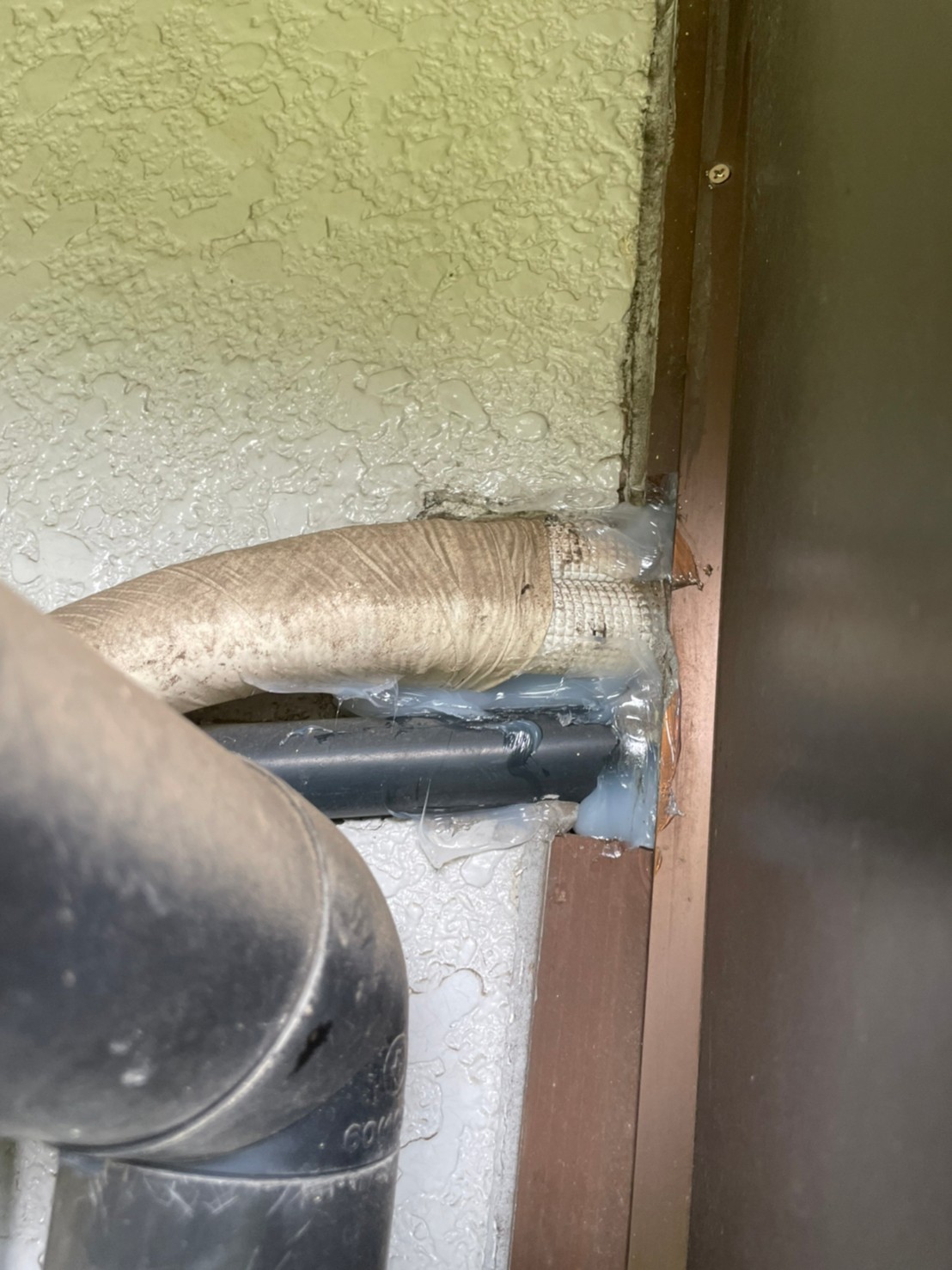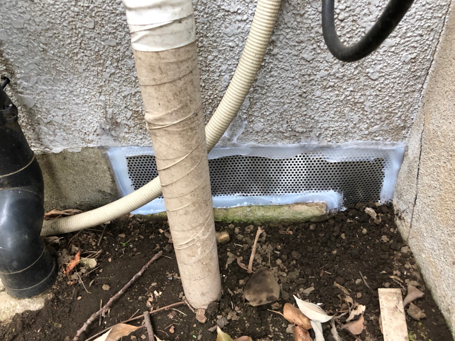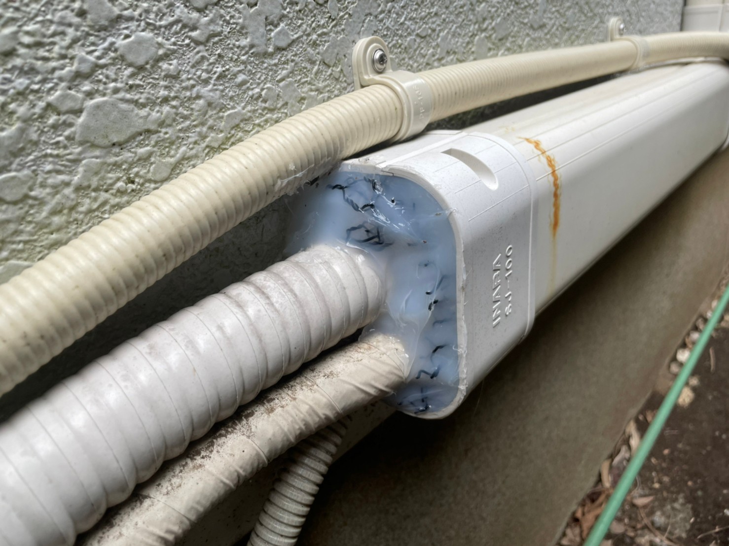 屋根の隙間やエアコン配管の隙間、配管引き込み部、外壁の隙間といった場所から、ネズミが建物内へ侵入しており、糞尿による悪臭やノミ・ダニ被害、建物の損傷などの理由からお問い合わせをいただきました。
