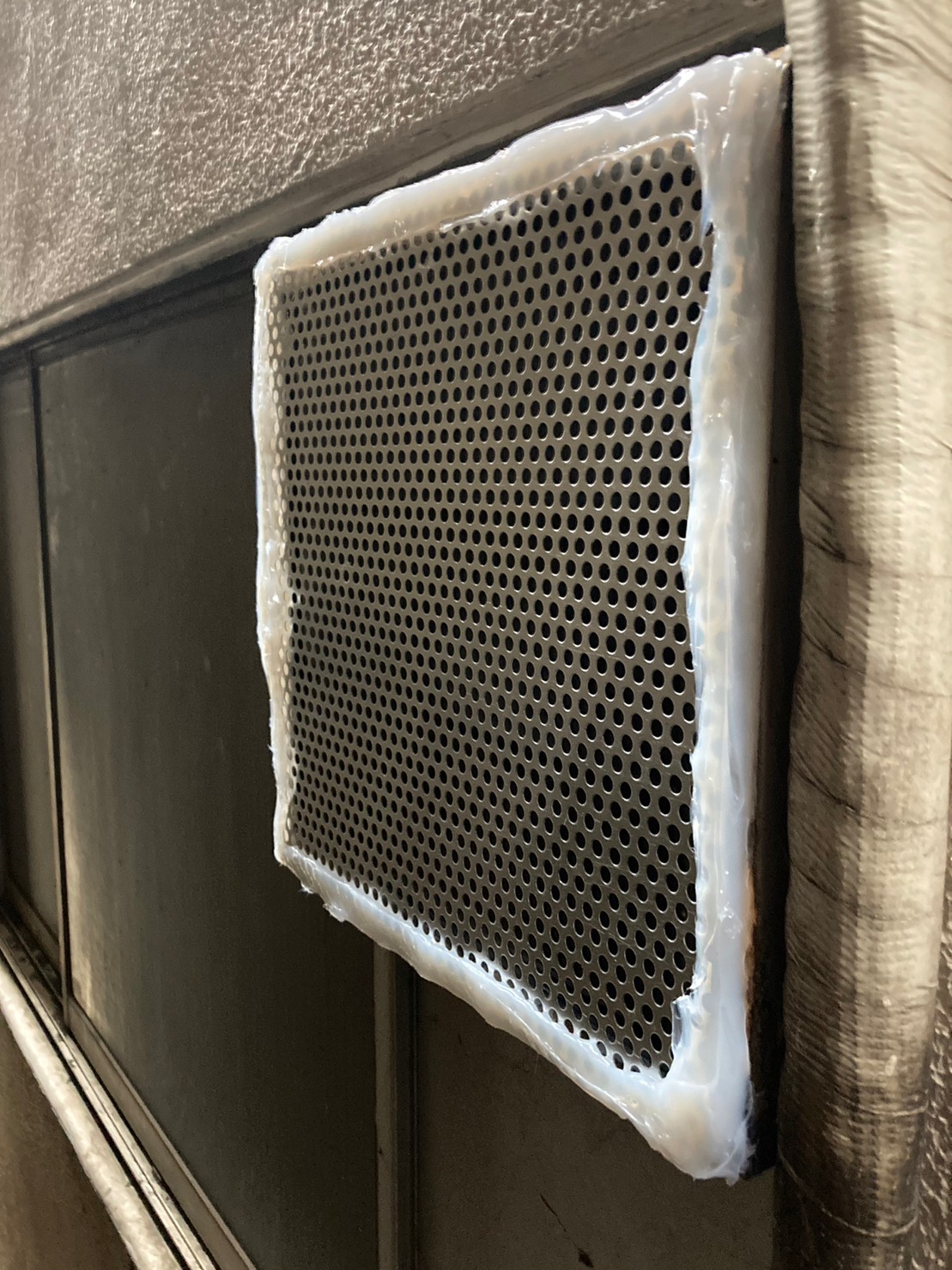 続いて、パンチングメタルや金網、コーキング剤などを用いて、あらゆる侵入経路を封鎖していきます。これによりネズミに限らず、他の害獣の再侵入も防ぐことができます。