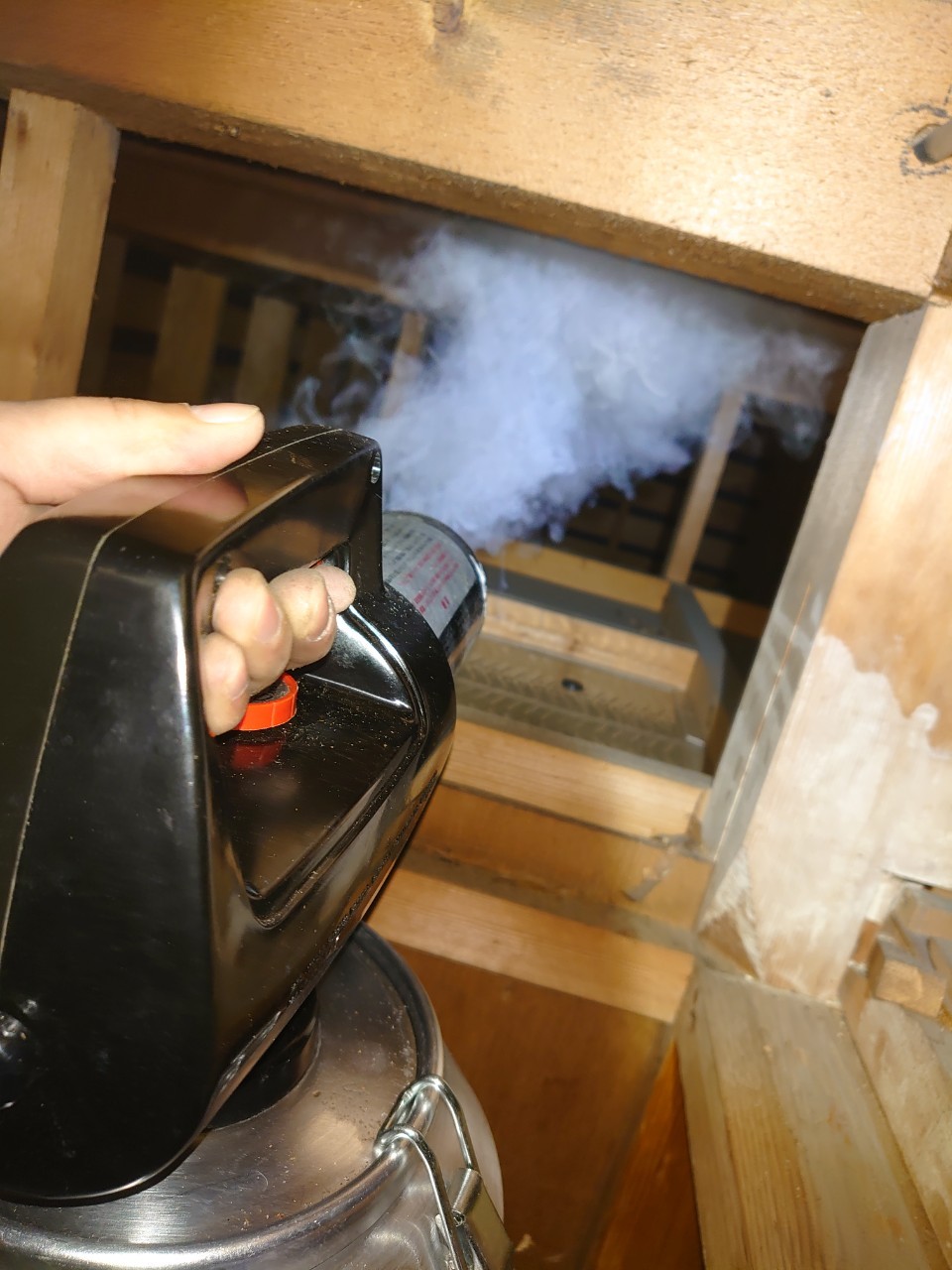 まずは、燻煙剤と呼ばれる薬剤を天井裏や床下に投入することで、ネズミを追い出していきます。
