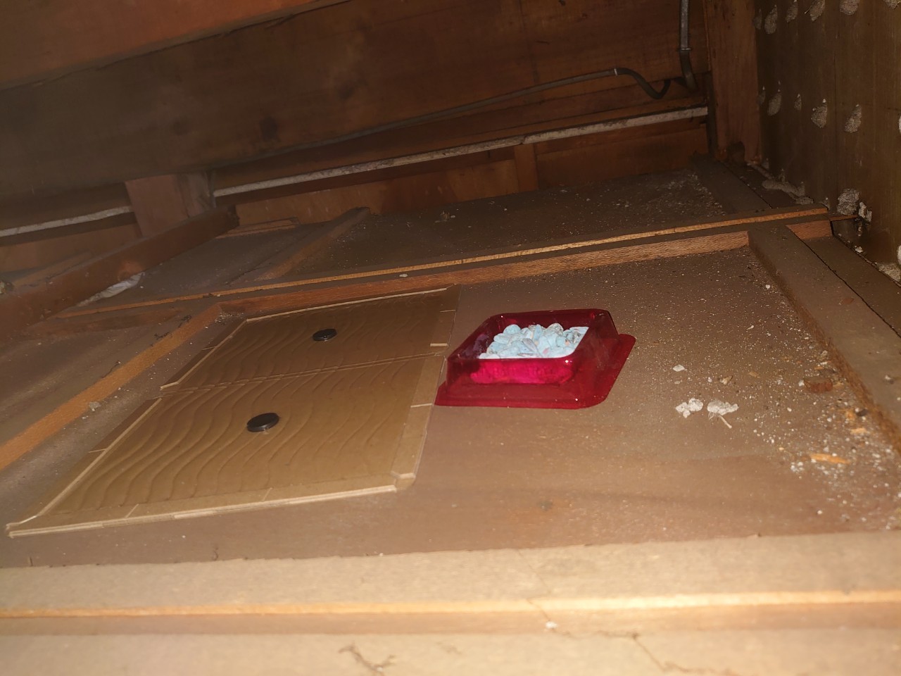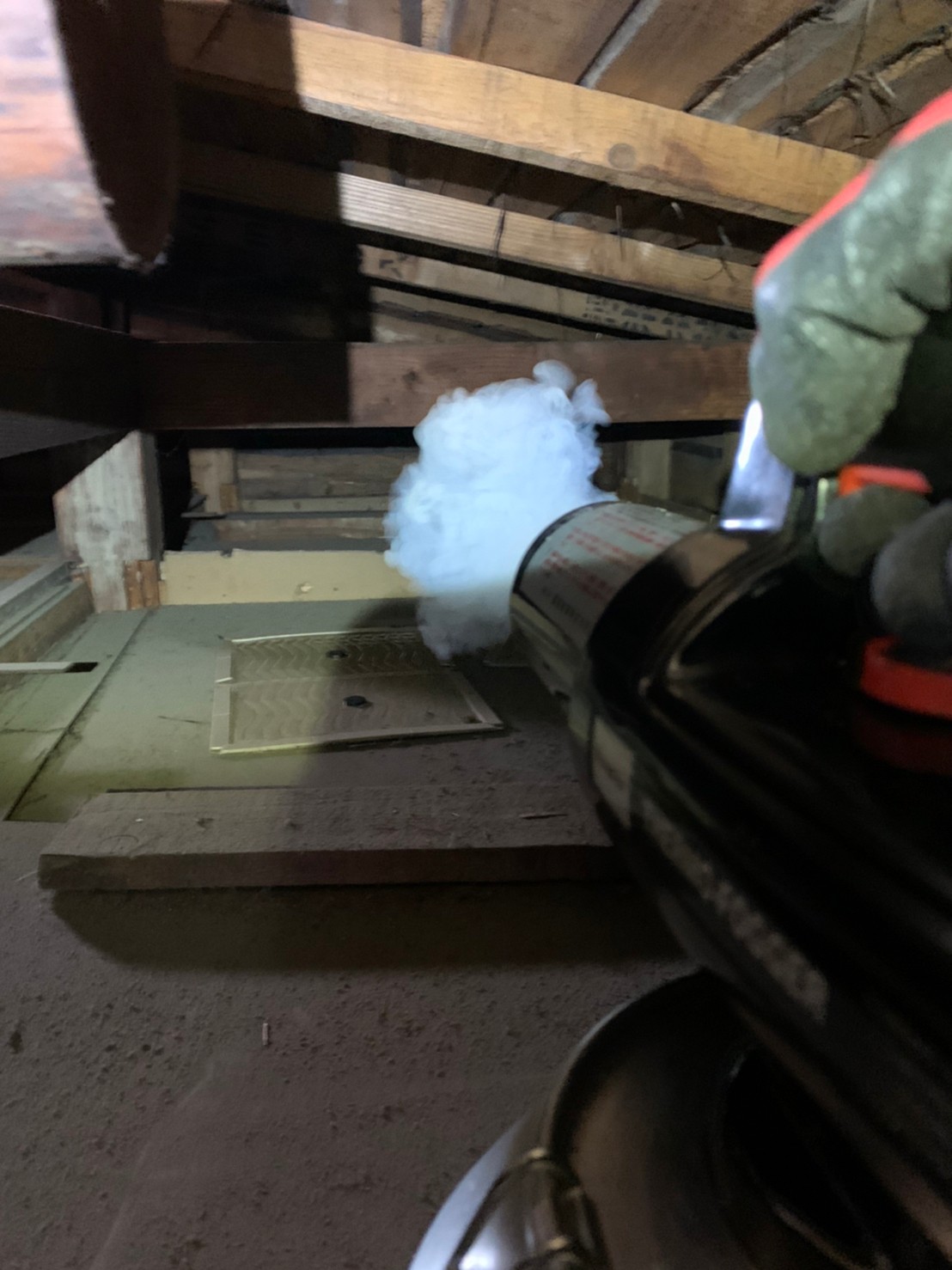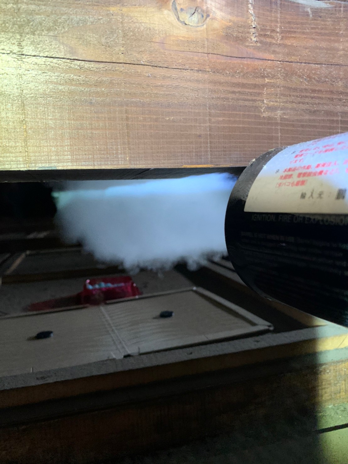 まずは、燻煙剤と呼ばれる薬剤を天井裏や床下に投入することで、ネズミを追い出していきます。