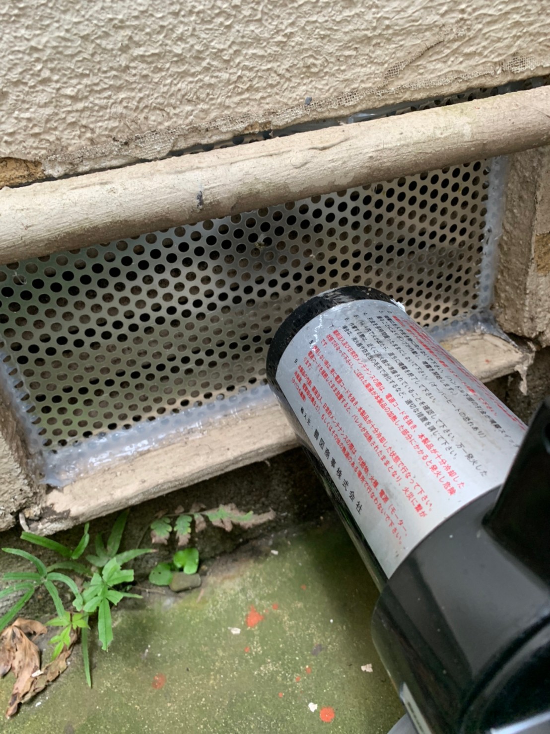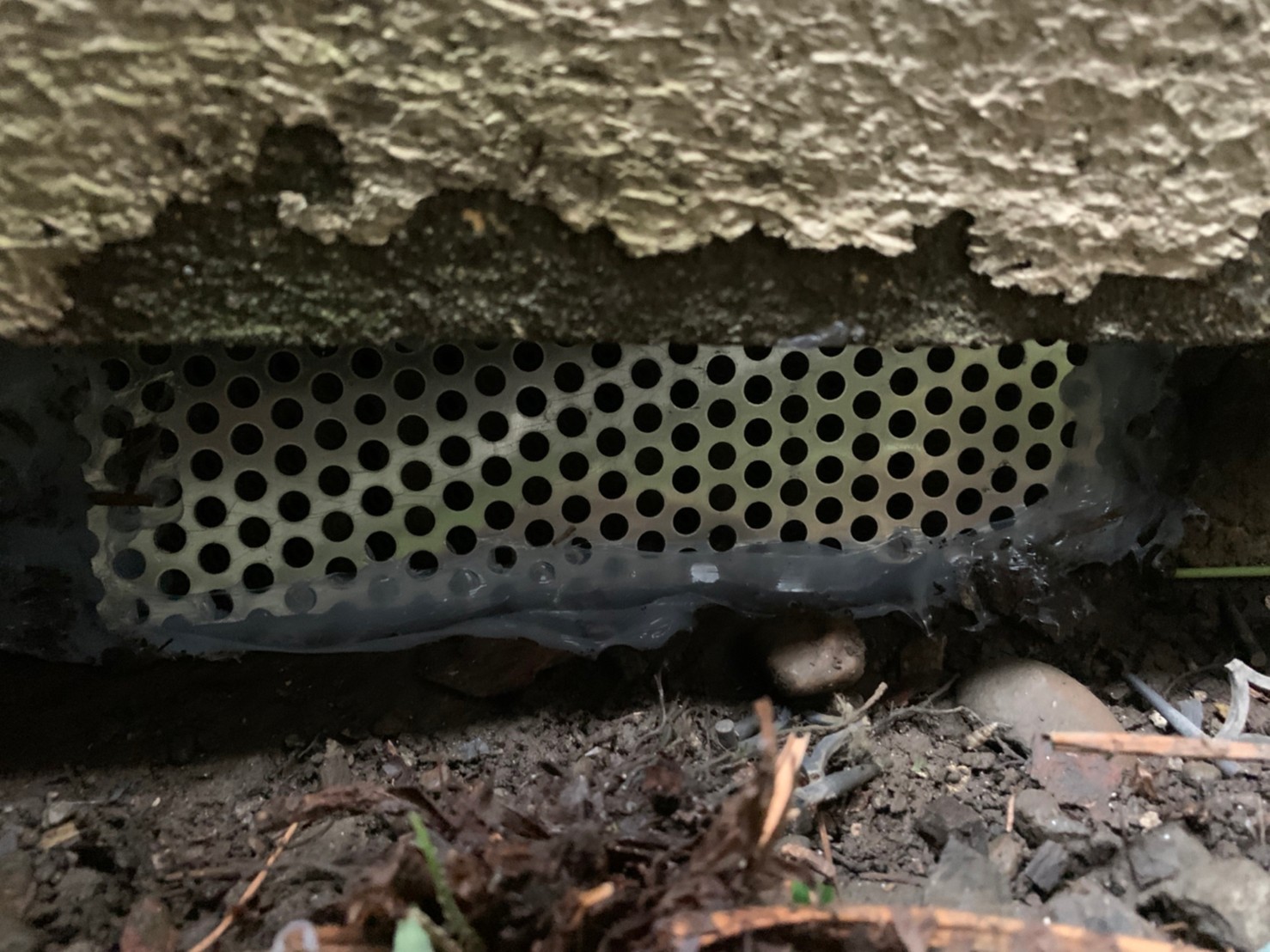 続いて、ネズミの再侵入を防ぐために、パンチングメタルや金網、コーキング剤などを用いて侵入経路の封鎖を行います。