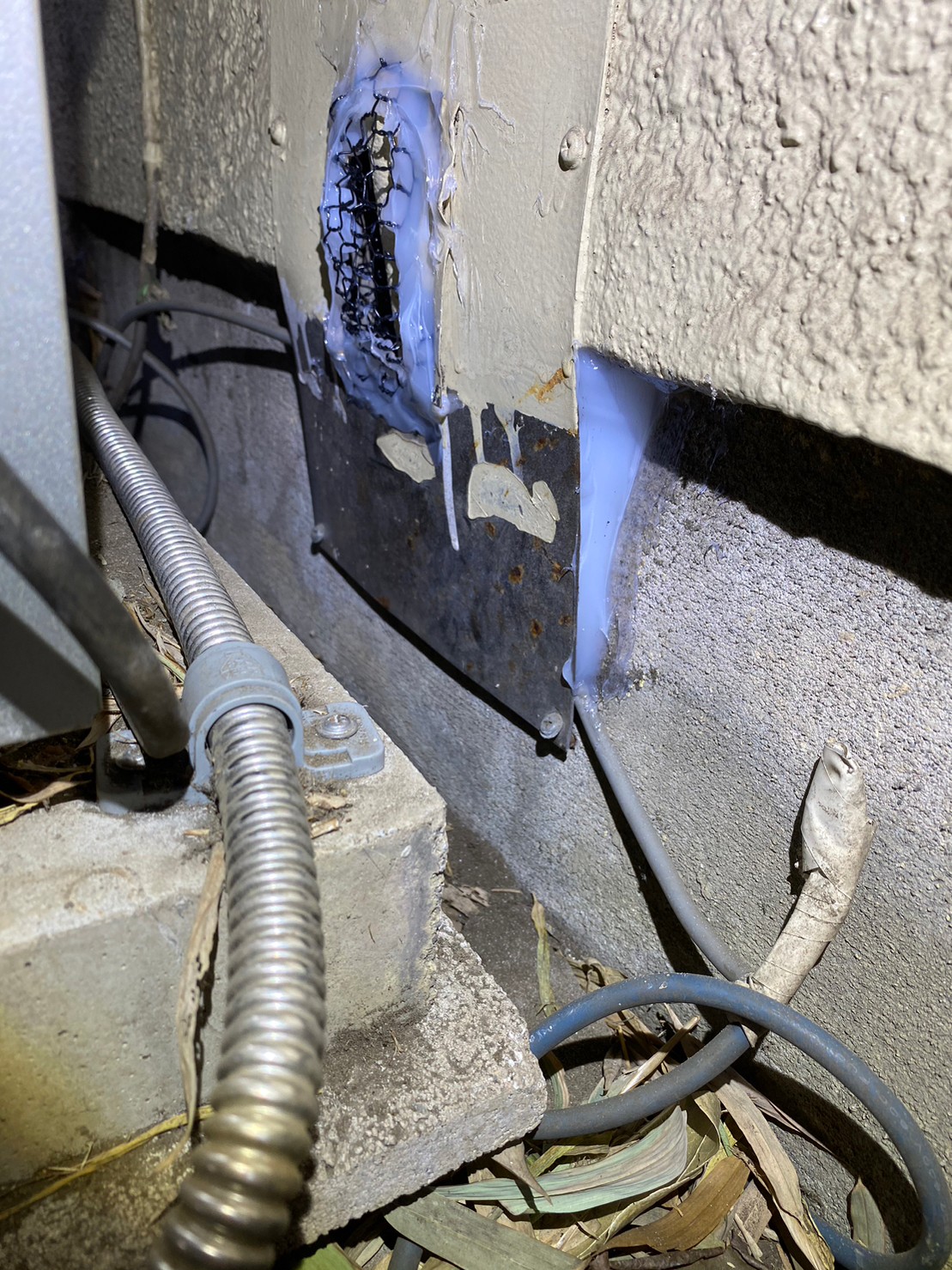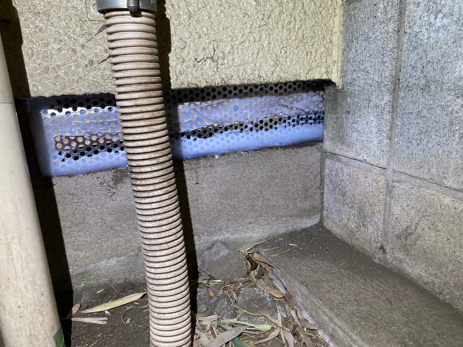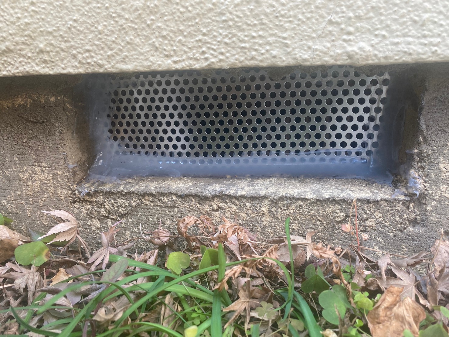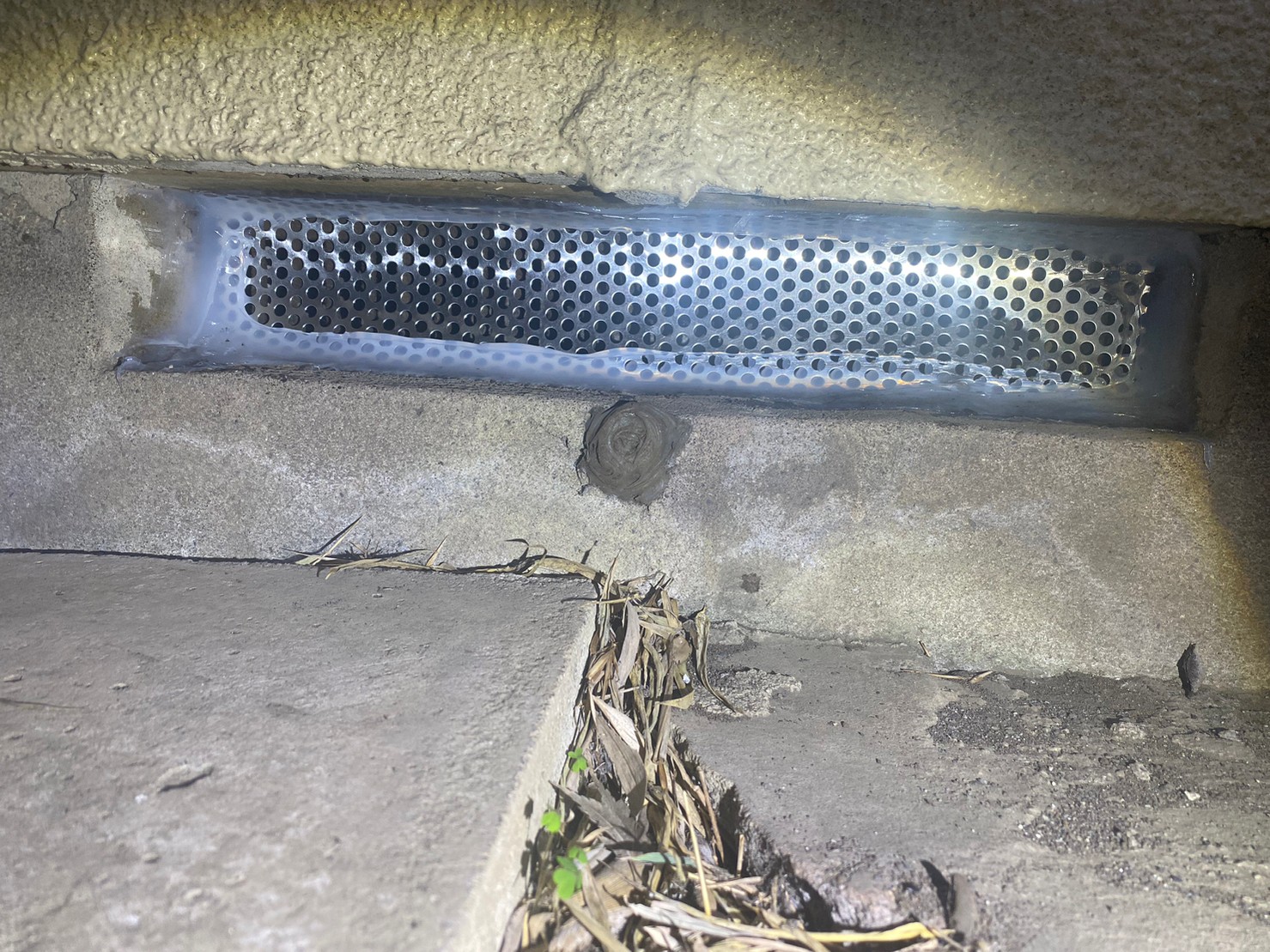 床下通風口やエアコン配管の隙間、外壁の隙間等がネズミ、ハクビシンの侵入経路と疑われました。