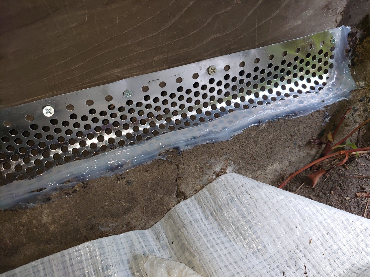 続いて、ハクビシン、アライグマの再侵入を防ぐために、パンチングメタルや金網、コーキング剤などを用いて侵入経路の封鎖を行います。