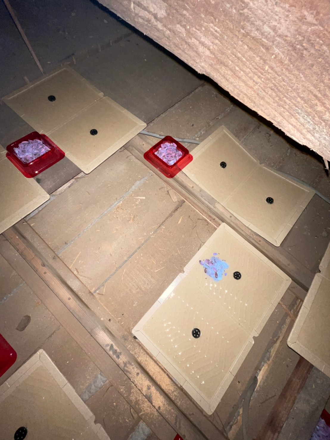 最後に、糞清掃や殺菌・消毒、マーキング消臭、ノミ・ダニ駆除、毒エサ・トラップ設置といった残りの作業を行い、駆除~再発防止までの工程が全て終了します。