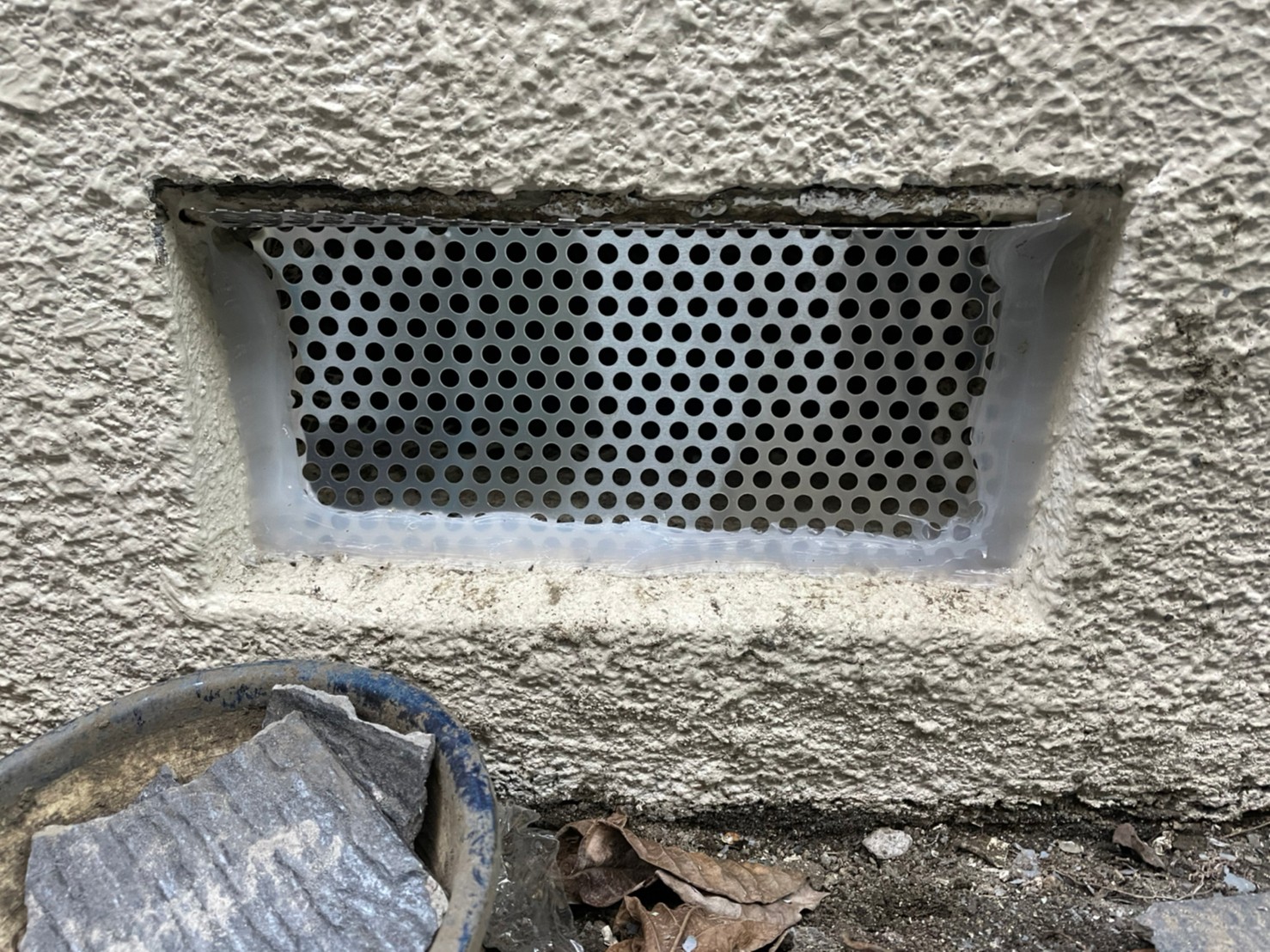 続いて、パンチングメタルや金網、コーキング剤などを用いて、あらゆる侵入経路を封鎖していきます。これによりネズミに限らず、他の害獣の再侵入も防ぐことができます。
