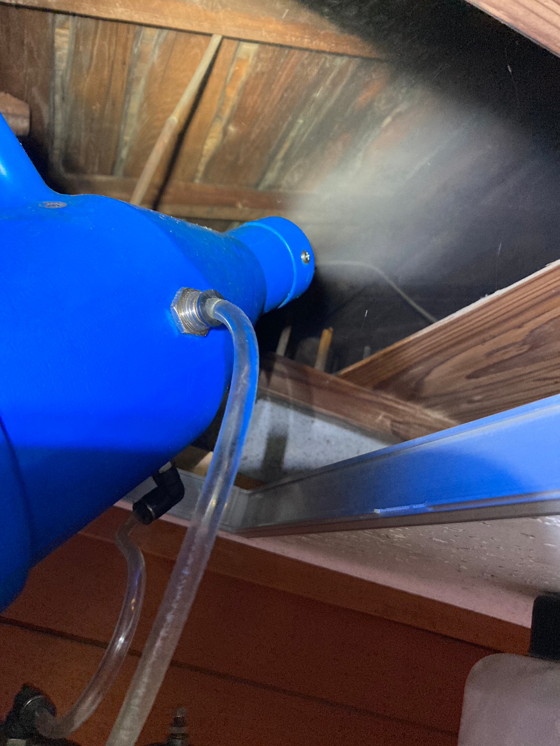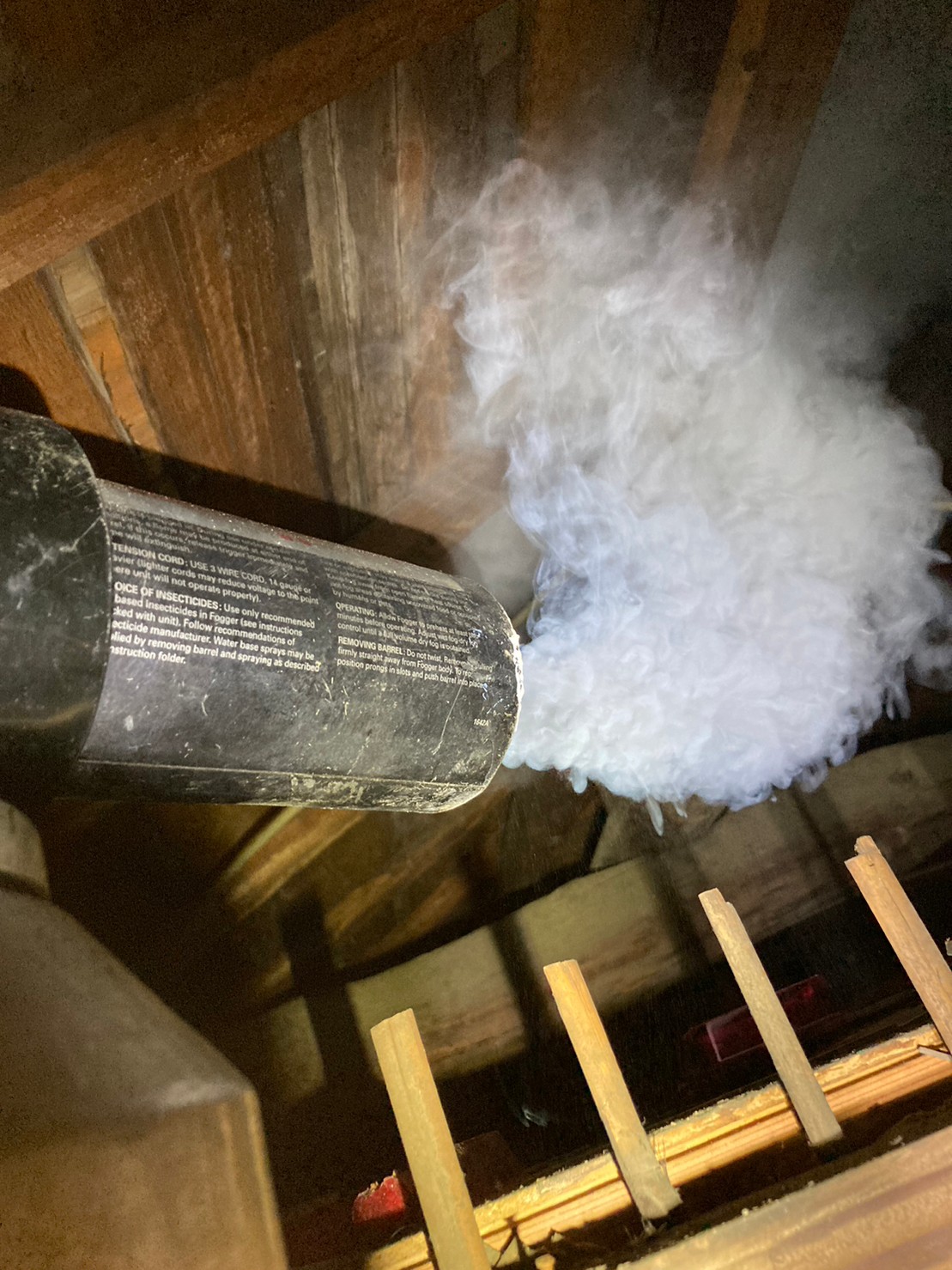 まずは、ネズミの巣がある場所に点検口を作成し、燻煙剤を使って屋内に潜んでいる個体を追い出します。