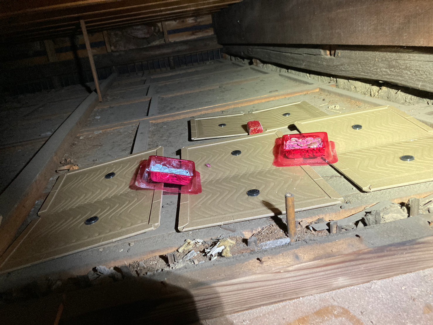最後に、糞清掃や殺菌・消毒、マーキング消臭、ノミ・ダニ駆除、点検口作成といった残りの作業を行い、駆除~再発防止までの工程が全て終了します。